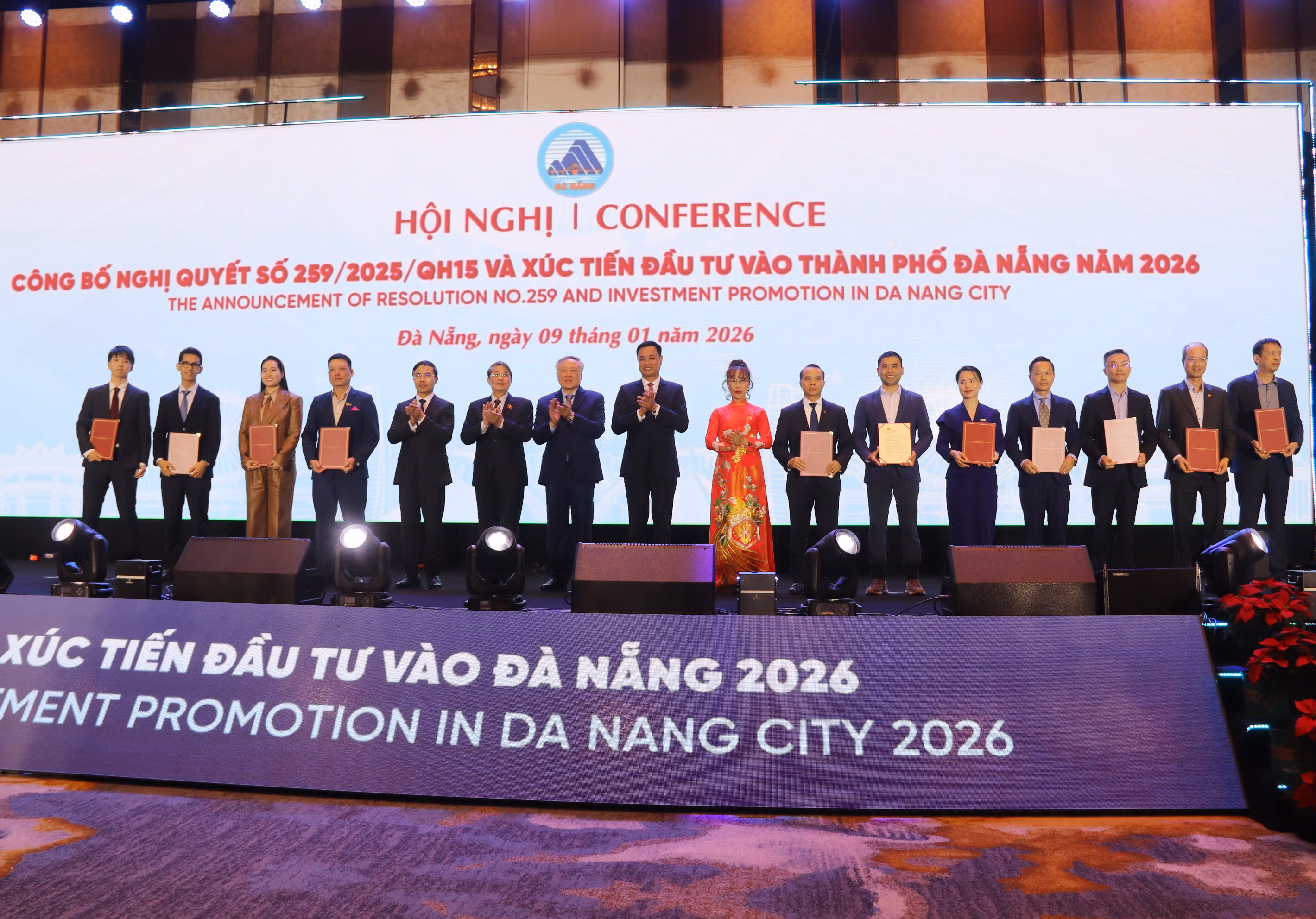 Chiều 9/1 tại Cung hội nghị quốc tế Ariyana Đà Nẵng, UBND TP Đà Nẵng tổ chức hội nghị công bố Nghị quyết số 259/2025/QH15 của Quốc hội và xúc tiến đầu tư vào TP Đà Nẵng năm 2026.
