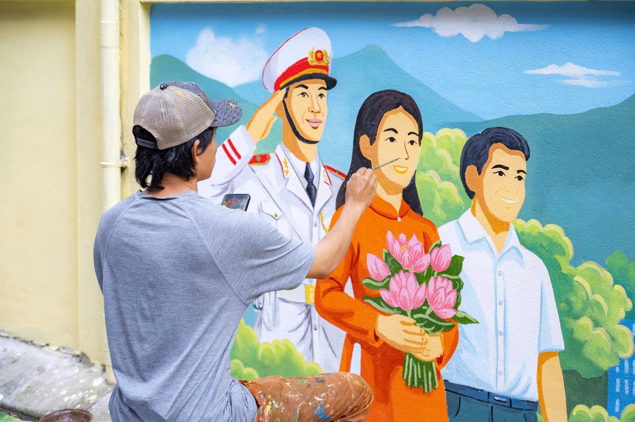 Ngày 14/2, các họa sĩ hoàn thành các bức bích họa trong kiệt 96 đường Thi Sách (Tổ dân phố số 6 HTT, phường Hòa Cường, TP Đà Nẵng) để người dân kịp đón Tết Nguyên đán Bính Ngọ 2026.