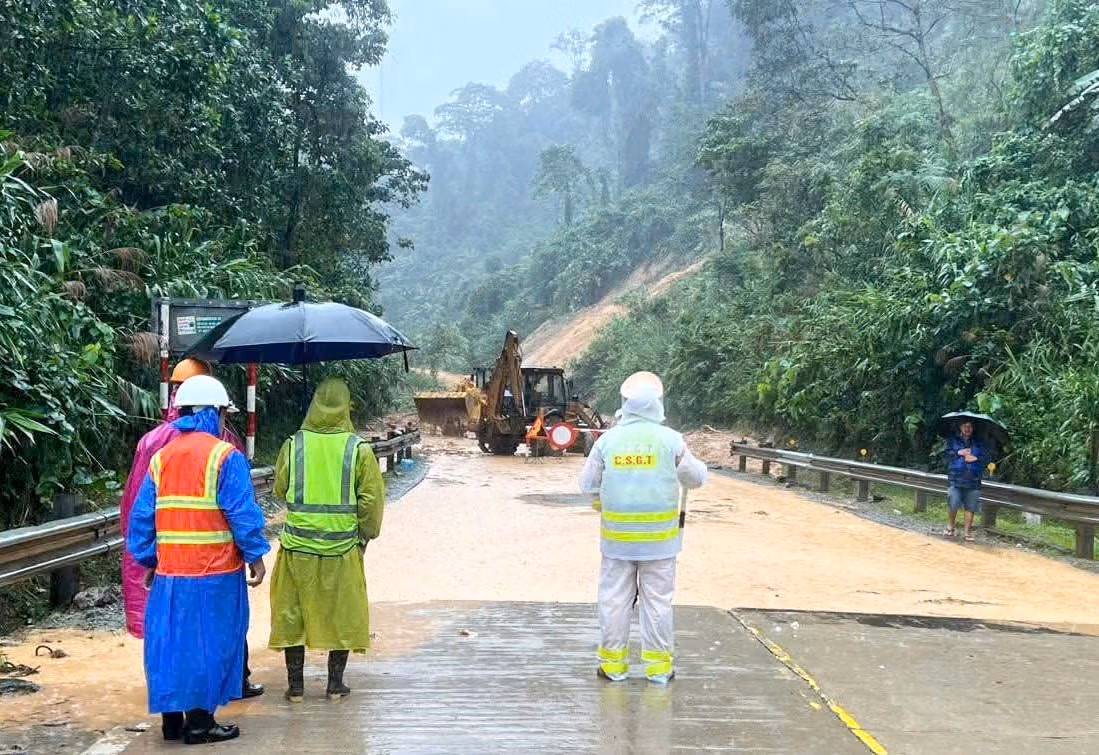 Riêng đoạn từ chân đèo Lò Xo đến km1403+00, nơi xảy ra sạt lở taluy dương với khối lượng đất đá lớn, lực lượng CSGT tổ chức phân luồng, hướng dẫn phương tiện quay đầu về Quốc lộ 1 hoặc di chuyển theo tuyến thay thế an toàn hơn.