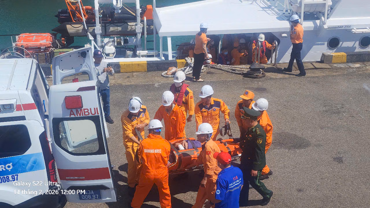 Lúc 10 ngày 14/2, tàu SAR274 tại Đà Nẵng khẩn trương rời cảng thực hiện nhiệm vụ cứu nạn, cùng đi theo tàu SAR 274 có 1 ê-kíp bác sĩ chuyên khoa của Trung tâm cấp cứu TP Đà Nẵng.