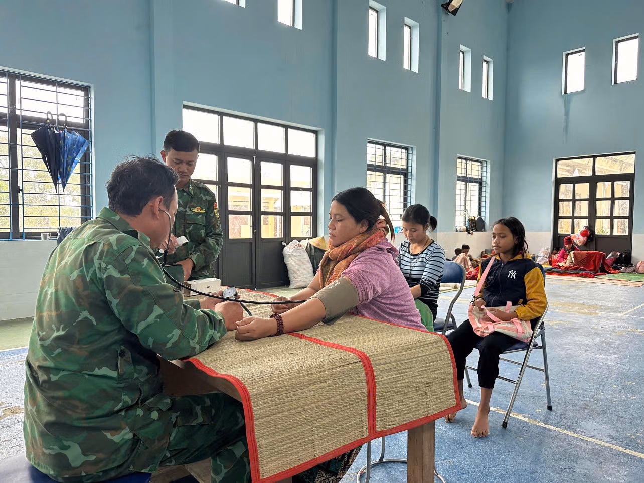 Lực lượng quân y của đơn vị cũng tổ chức khám, phát thuốc cho 20 người dân có triệu chứng ho, sốt do thời tiết lạnh, ẩm kéo dài. Ngoài đảm bảo bữa ăn và sức khỏe cho bà con, lực lượng Biên phòng thường xuyên tuyên truyền, động viên người dân yên tâm ở lại khu vực tránh trú, hạn chế di chuyển qua các điểm sạt lở núi nguy hiểm.