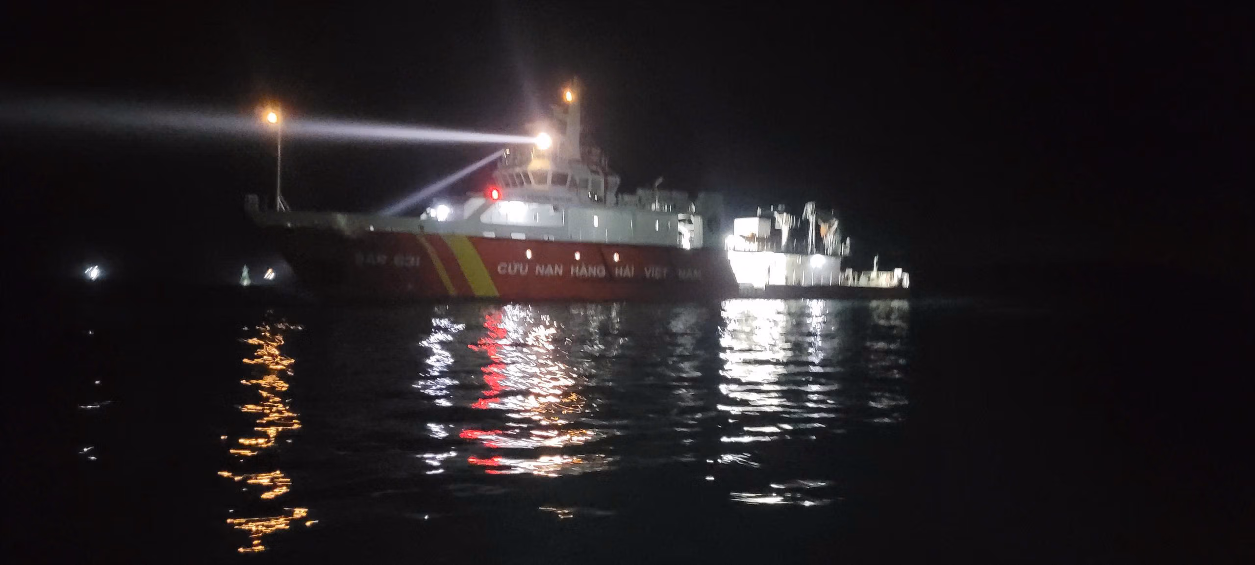 Tàu SAR 631 đã xuyên đêm, vượt qua điều kiện thời tiết khắc nghiệt với sức gió cấp 6 giật cấp 7-8, sóng cao từ 2-4 mét, tiếp cận đặc khu Cù Lao Chàm trong đêm khuya.