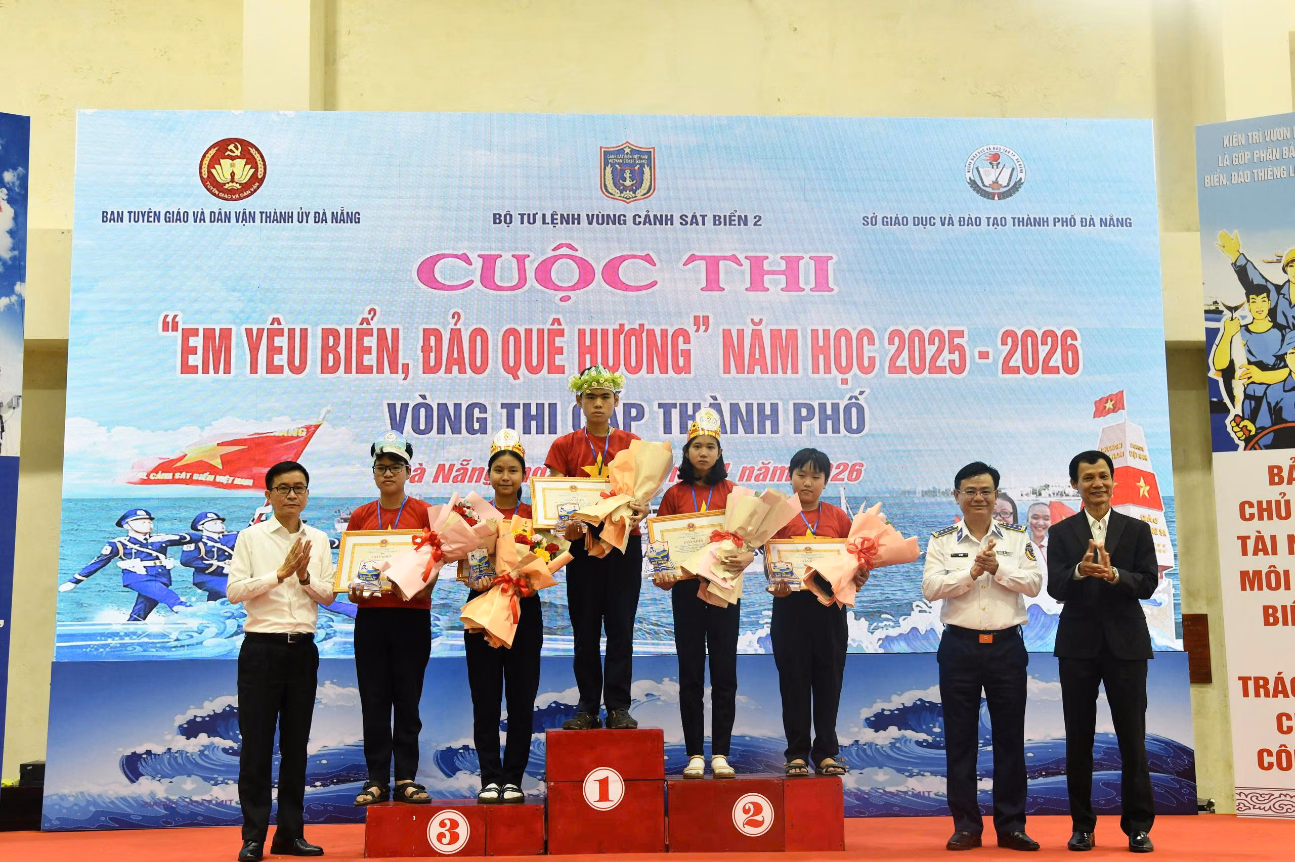Dự và chỉ đạo cuộc thi có Đại tá Lê Huy, Chính ủy Vùng Cảnh sát biển 2; ông Lê Văn Minh, Phó Trưởng ban Tuyên giáo và Dân vận Thành ủy Đà Nẵng cùng gần 1.000 giáo viên, học sinh các trường THCS ven biển trên địa bàn thành phố.