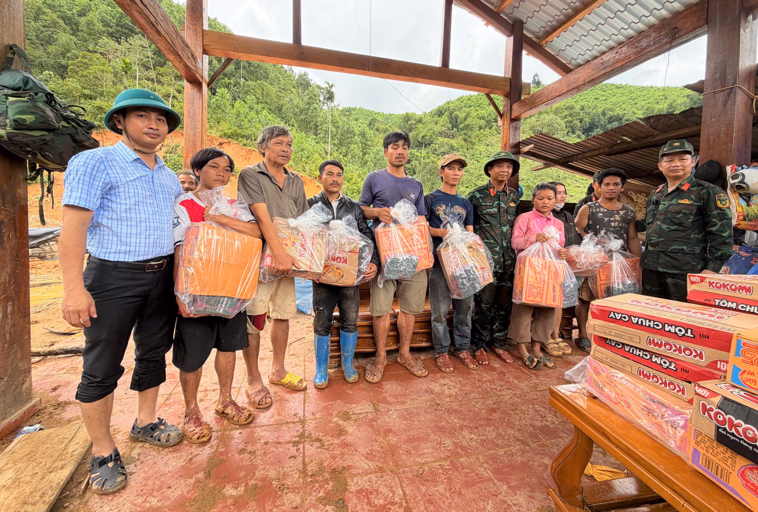 Đến sáng 31/10, gần 100 cán bộ, chiến sĩ công an, lực lượng quân sự, dân quân và cán bộ xã, thôn đã được huy động, mang theo mì tôm, gạo, bánh chưng, lương khô, thuốc men và nhu yếu phẩm vượt qua hơn 7 km đường rừng, băng qua hàng chục điểm sạt lở để tiếp tế cho người dân các thôn Sông Y, Trà Giác và Ngọc Tu.