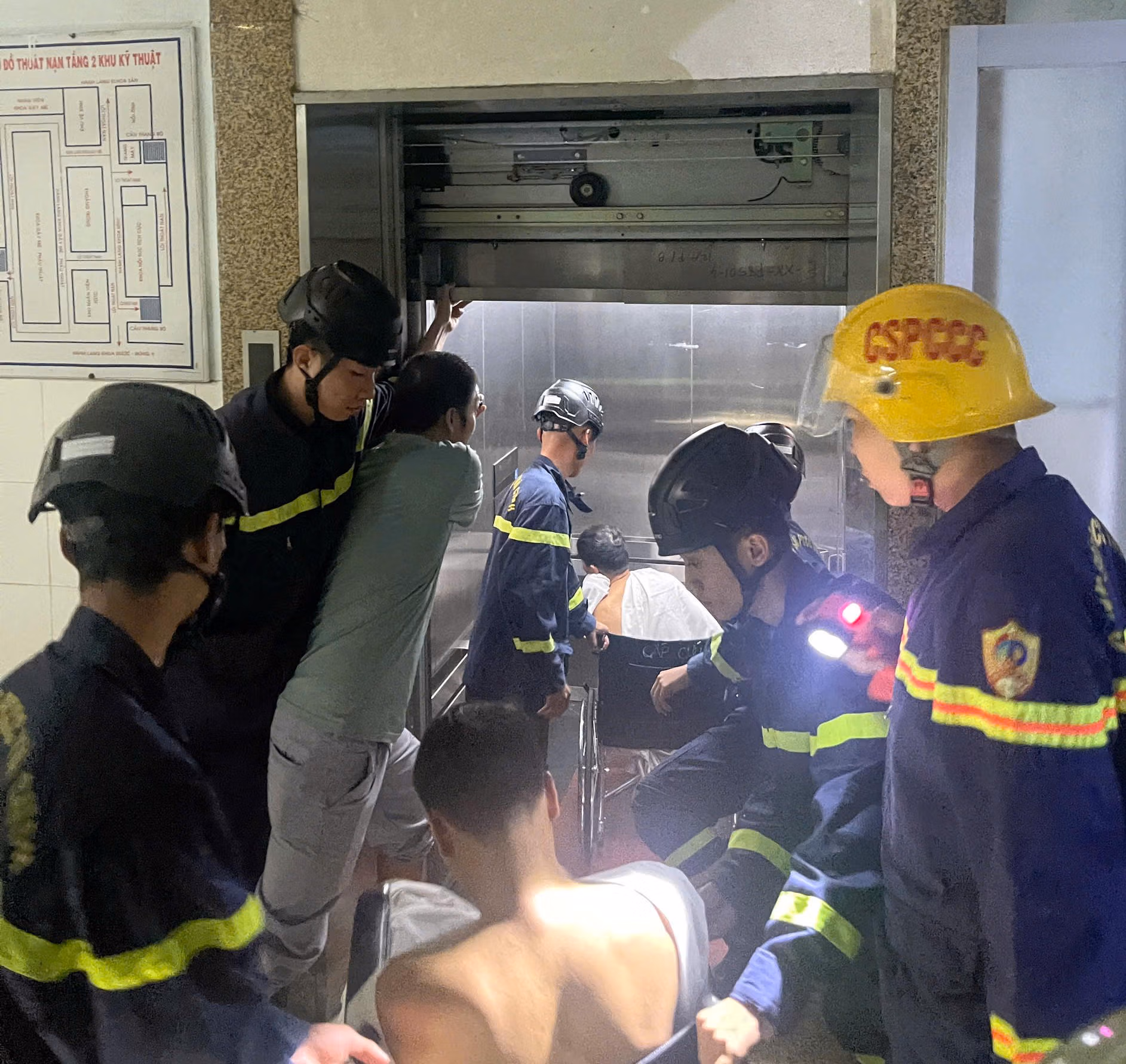 Chỉ sau khoảng 2 phút di chuyển, lực lượng cứu nạn có mặt tại bệnh viện, xác định trong cabin thang máy có 3 người bị mắc kẹt, gồm 2 bệnh nhân và 1 nhân viên y tế. Do không gian chật hẹp và thời gian mắc kẹt kéo dài, các nạn nhân đều trong trạng thái lo lắng, hoảng sợ.