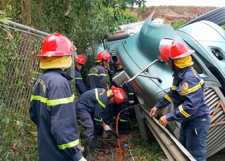 Đà Nẵng: Giải cứu tài xế mắc kẹt trong cabin xe đầu kéo sau tai nạn trên cao tốc