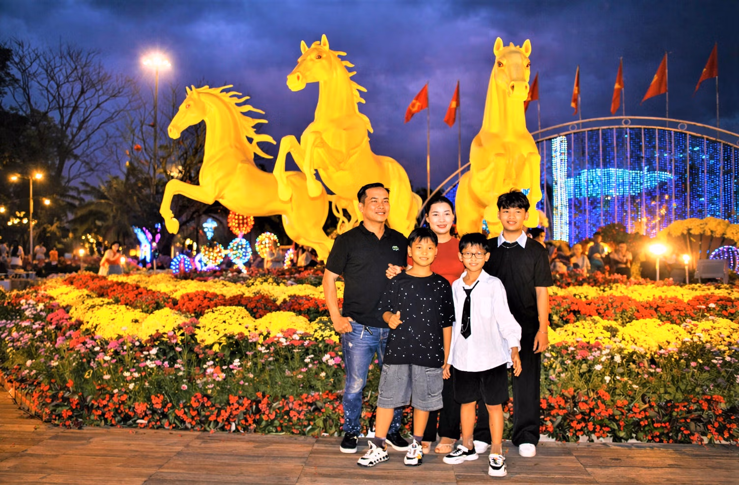 Lực lượng chức năng túc trực điều tiết giao thông, đảm bảo an ninh trật tự để người dân tham quan an toàn. Nhiều gia đình tranh thủ lưu lại những bức ảnh kỷ niệm trước khi bước sang năm mới, khép lại một năm cũ với nhiều cảm xúc và kỳ vọng cho chặng đường phía trước.
