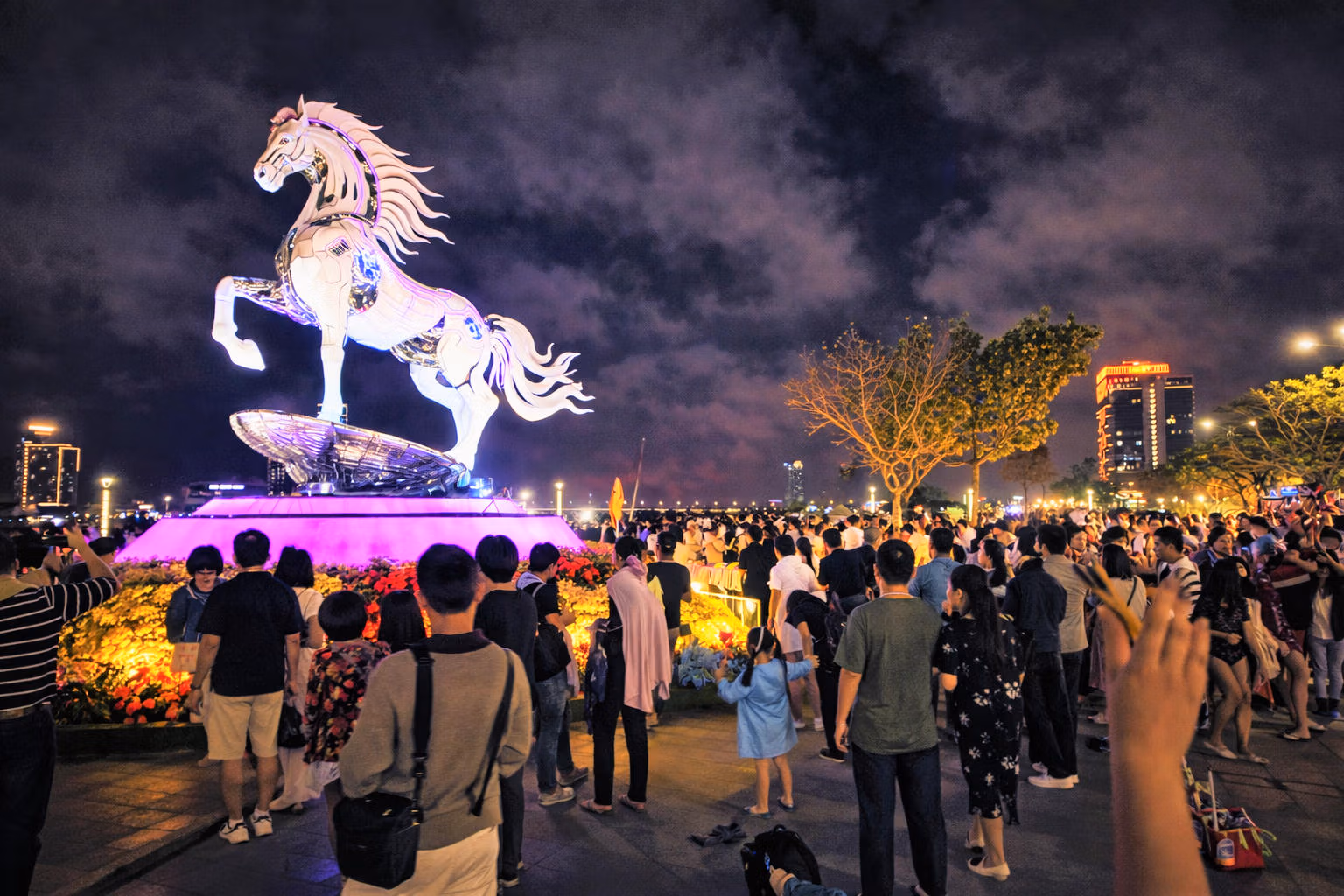 Chiều và tối 16/2 (tức 29 Tết), không khí đón giao thừa tại TP Đà Nẵng trở nên rộn ràng khi đông đảo người dân đổ về các khu vực trung tâm như Quảng trường 24/3, phường Bàn Thạch, phường Hương Trà;… để vui chơi, chụp ảnh, thưởng thức các chương trình nghệ thuật và chờ đón màn bắn pháo hoa đêm giao thừa.