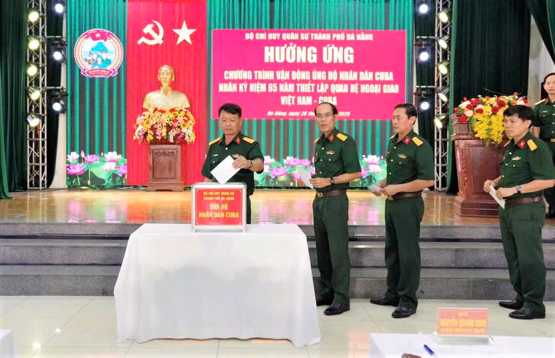Nhân kỷ niệm 65 năm thiết lập quan hệ ngoại giao Việt Nam- Cuba, chiều 26/8, Bộ Chỉ huy Quân sự (CHQS) TP Đà Nẵng tổ chức hưởng ứng chương trình vận động ủng hộ nhân dân Cuba.