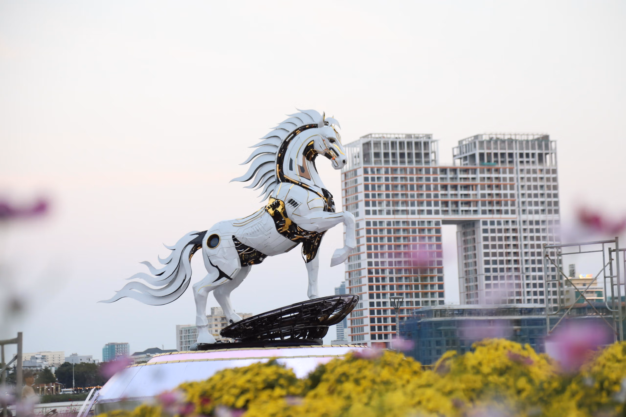 Mô hình này mang dáng vóc mạnh mẽ, bề thế, thể hiện không gian đô thị hiện đại và kỳ vọng phát triển của thành phố trong năm mới 2026.