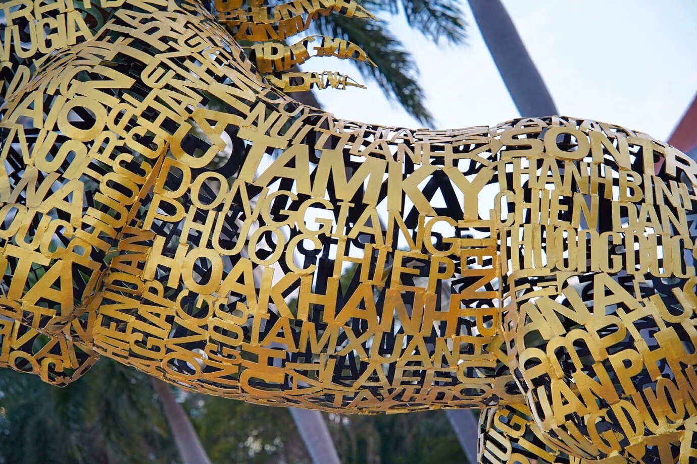 Còn mô hình “Kim Mã hợp nhất” bố trí trên vỉa hè đường Bạch Đằng trước Bảo tàng Đà Nẵng (cầu chữ T), có kích thước 3,7m x 3,8m x 1,5m, cấu tạo từ khung kim loại ghép các chữ cái tên địa danh thành phố và 94 đơn vị hành chính cấp xã, phường, đặc khu trực thuộc.