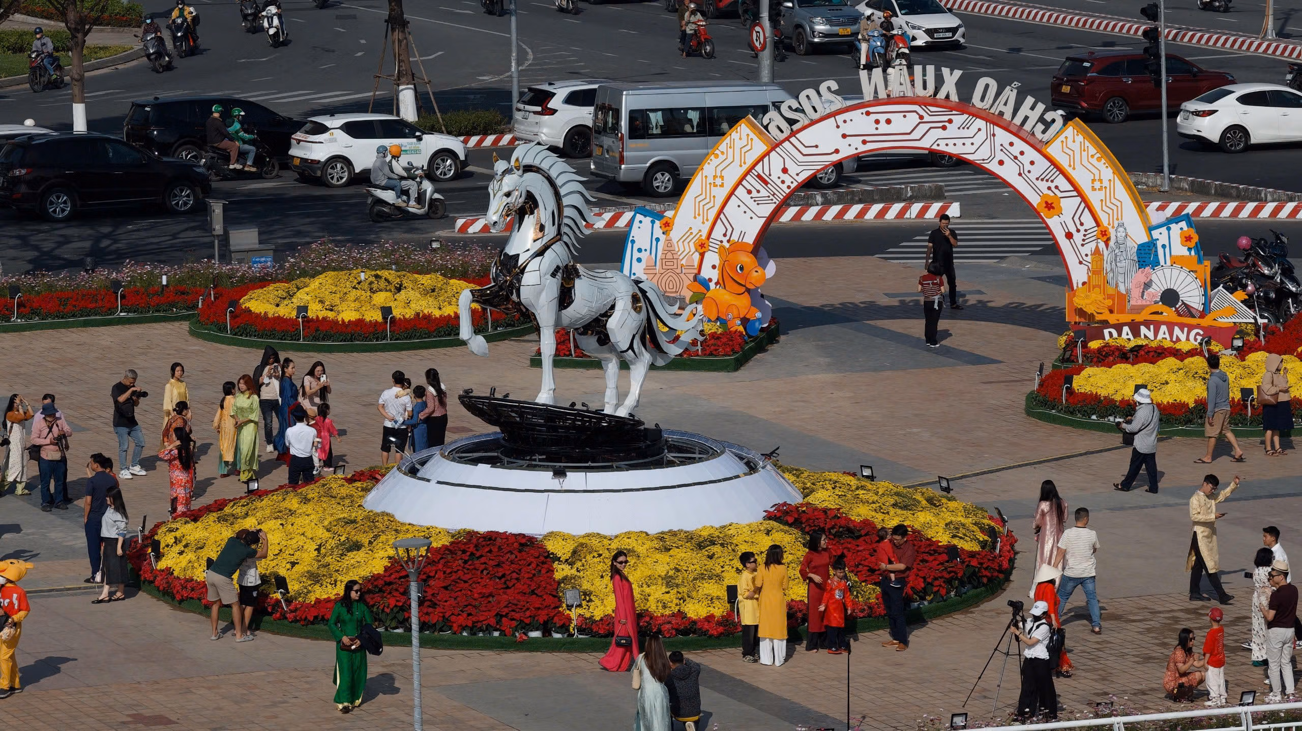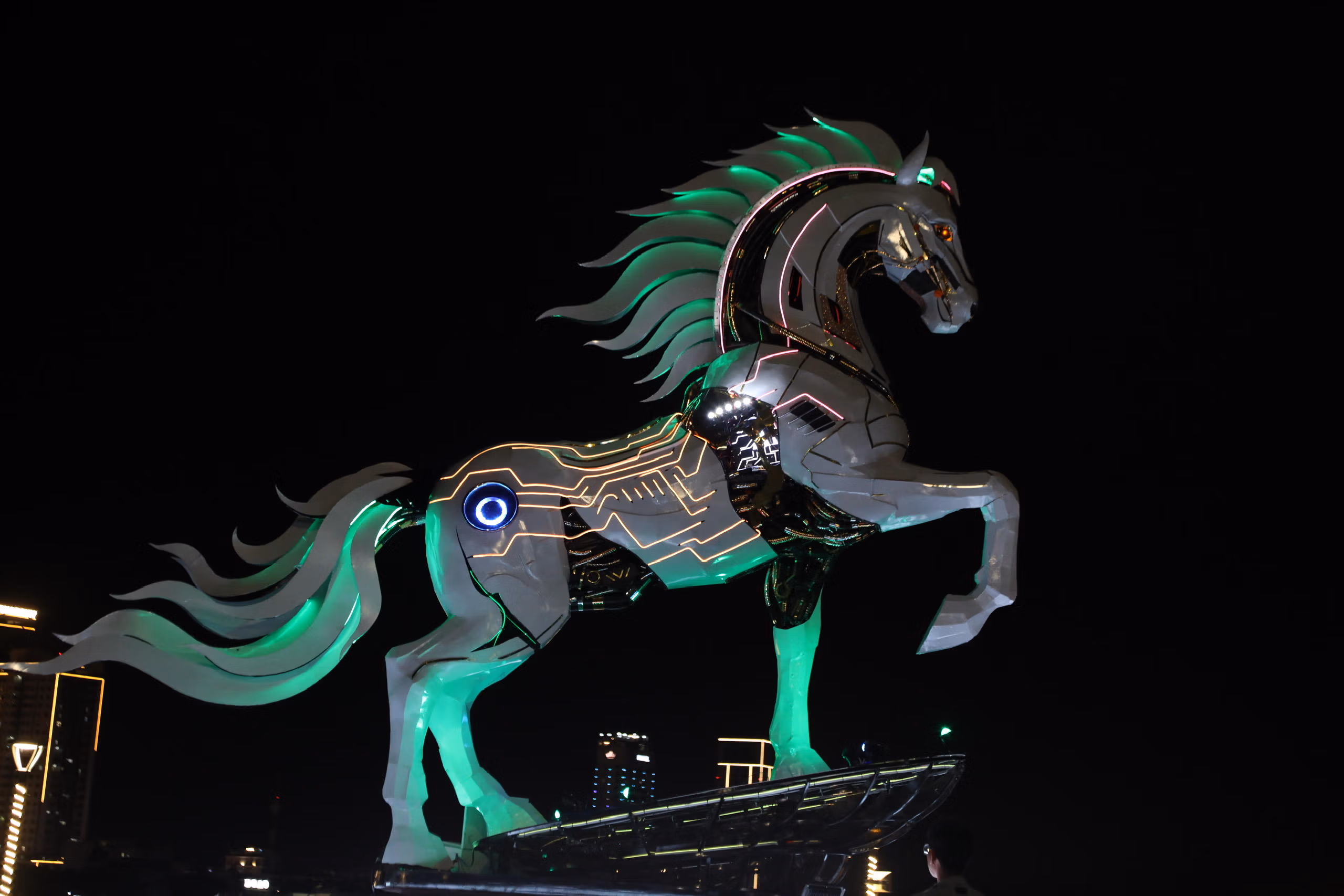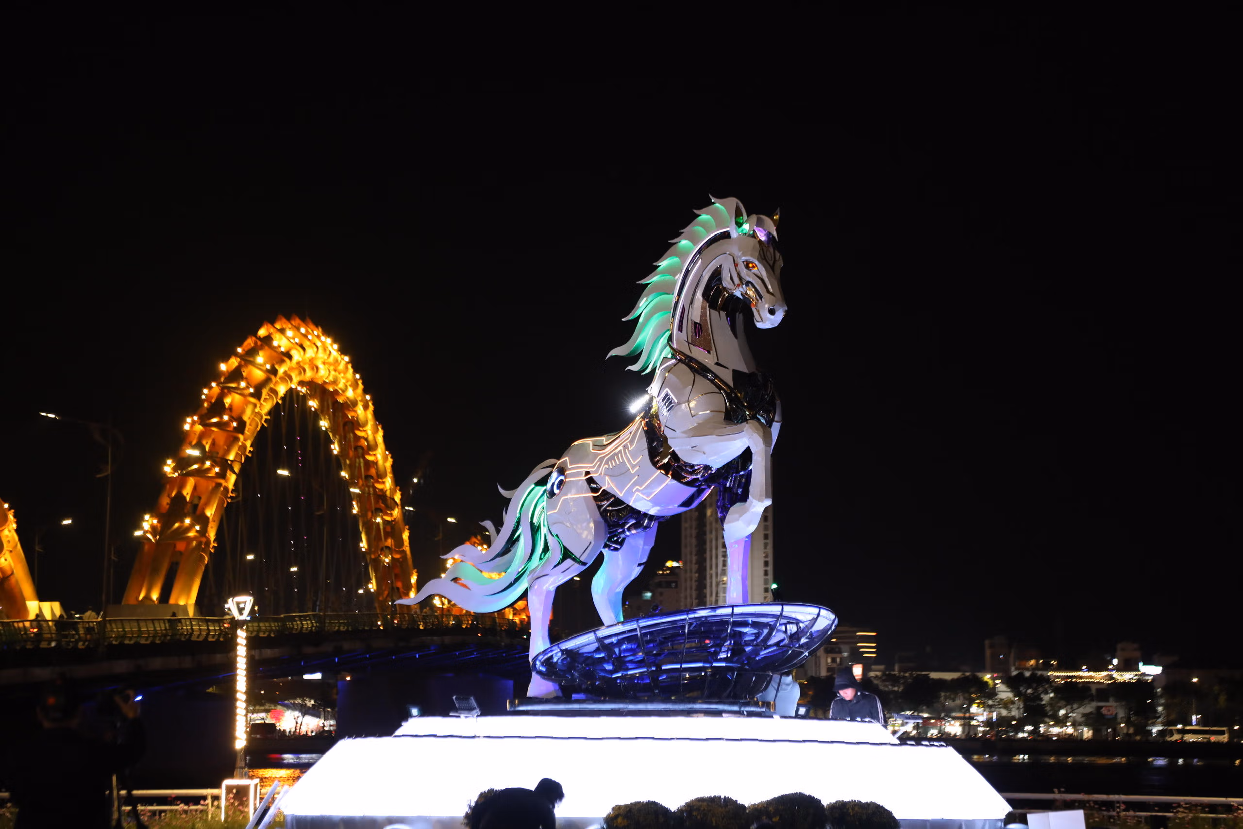 Trong đó, tại cầu Rồng, linh vật ngựa “Kim Mã 4.0” được thiết kế theo hình tượng ngựa công nghệ chuyển đổi số, vừa hài hòa về nghệ thuật tạo hình, vừa biểu trưng cho tinh thần tốc độ, đổi mới, định hướng phát triển đô thị thông minh của Đà Nẵng trong giai đoạn mới.