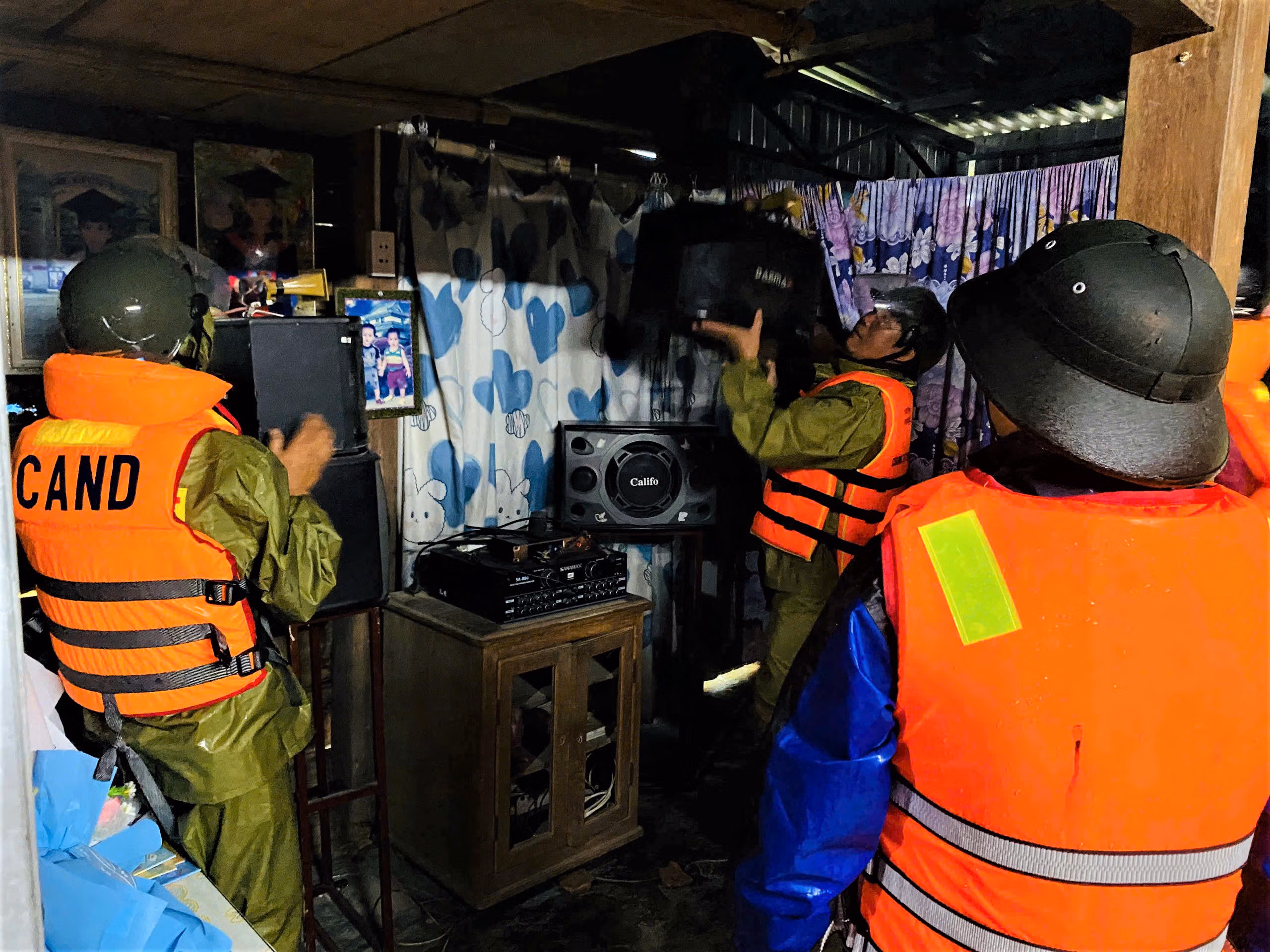 Trước tình hình đó, lực lượng Công an xã đã huy động 20 cán bộ, chiến sĩ, phối hợp cùng chính quyền địa phương và dân quân tự vệ, khẩn trương đến từng khu vực ngập nặng để hỗ trợ người dân di chuyển đồ đạc, sơ tán người già, trẻ nhỏ và phụ nữ đến nơi an toàn.