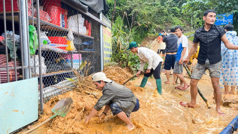 Còn tại xã Trà Tập, TP Đà Nẵng tranh thủ thời điểm tạnh mưa, lực lượng tại chỗ cùng người dân ở khu dân cư Cheng Tong, thôn 1 và Tu Gia 2, thôn 6 đã ra quân dọn dẹp đất đá sạt lở nhỏ, đảm bảo đường đi lại thông suốt.
