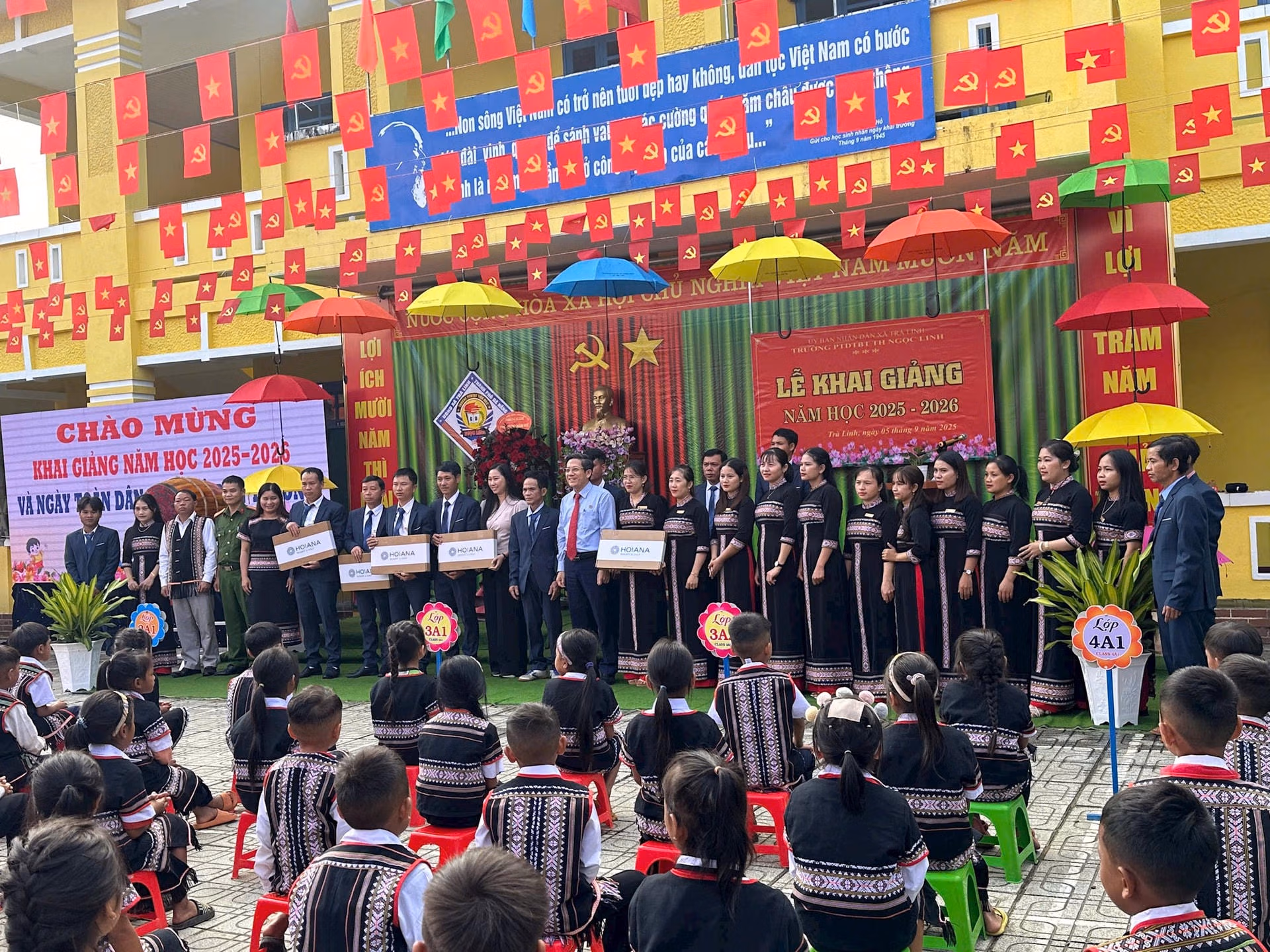 Minh chứng điều đó, sáng nay khắp nơi cờ hoa rực rỡ, tiếng nói cười vui vẻ của phụ huynh đưa con đến trường, của thầy cô chào đón các em học sinh, trường lớp khang trang. Còn học sinh mặc bộ trang phục của dân tộc mình rất xinh đẹp. Tất cả cho ngày khai hội năm học mới, với niềm tin yêu.