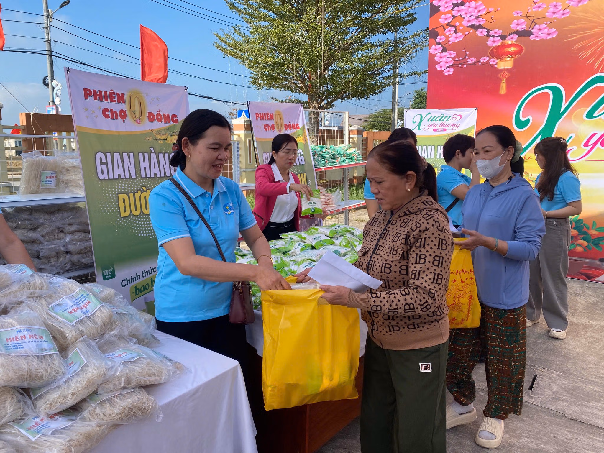 Phiên chợ 0 đồng trong chương trình Xuân yêu thương ở xã nông thôn Bà Nà (TP Đà Nẵng) giúp người dân có thêm nhu yếu phẩm để chuẩn bị đón tết.