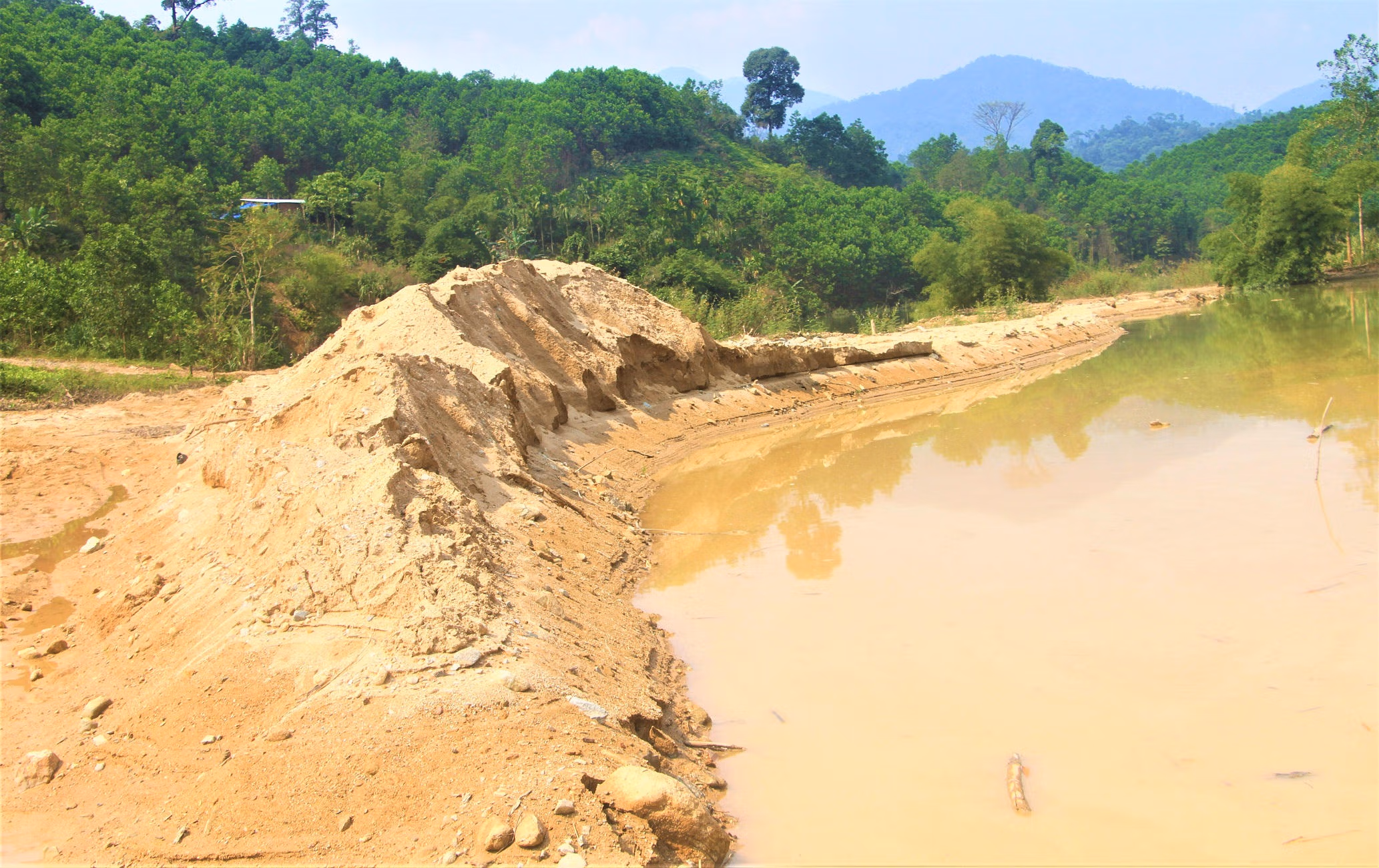 Những ngày qua, theo chân những người dân địa phương, chúng tôi có mặt tại tuyến đường mòn nối từ Quốc lộ 40B dẫn xuống hạ lưu sông Nước Xa. Cách mặt đường nhựa khoảng 100m, một khung cảnh tan hoang hiện ra trước mắt. Dọc theo bờ sông, từng mảng đất bị khoét sâu, cát được múc lên và vun thành những đống lớn chạy dài hàng chục mét.