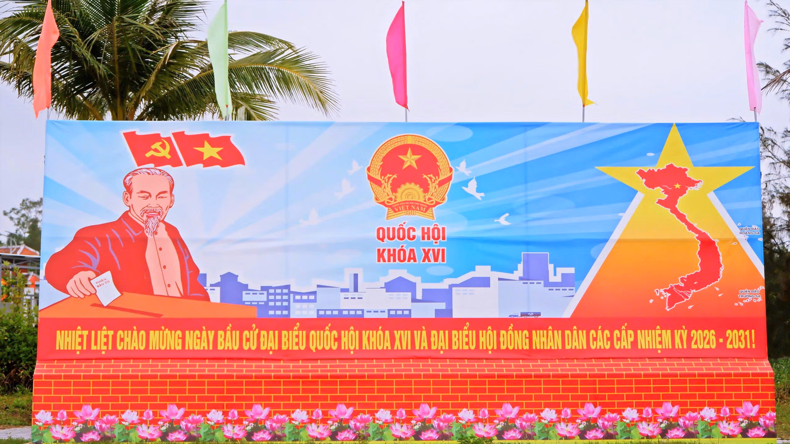 Những khẩu hiệu cổ động với nội dung: “ ngắn gọn, súc tích, thể hiện ý nghĩa và tầm quan trọng của cuộc bầu cử được treo trang trọng tại các khu vực công cộng, trụ sở cơ quan, trường học, chợ và khu dân cư.