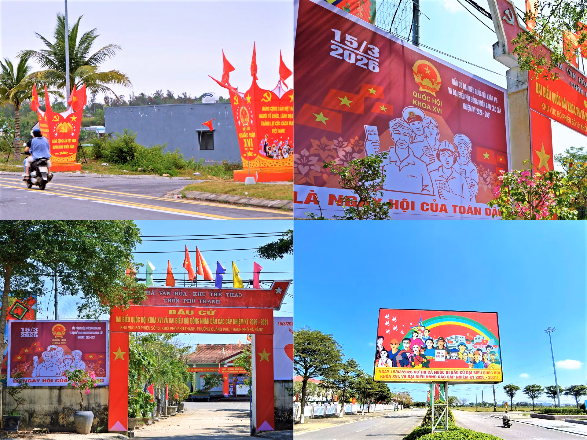 Ghi nhận của chúng tôi, từ trung tâm TP Đà Nẵng đến các xã miền núi đâu đâu cũng tràn ngập sắc đỏ của cờ Tổ quốc, băng rôn, khẩu hiệu cổ động, tạo nên diện mạo tươi mới và khí thế phấn khởi hướng về ngày hội chính trị quan trọng của đất nước.