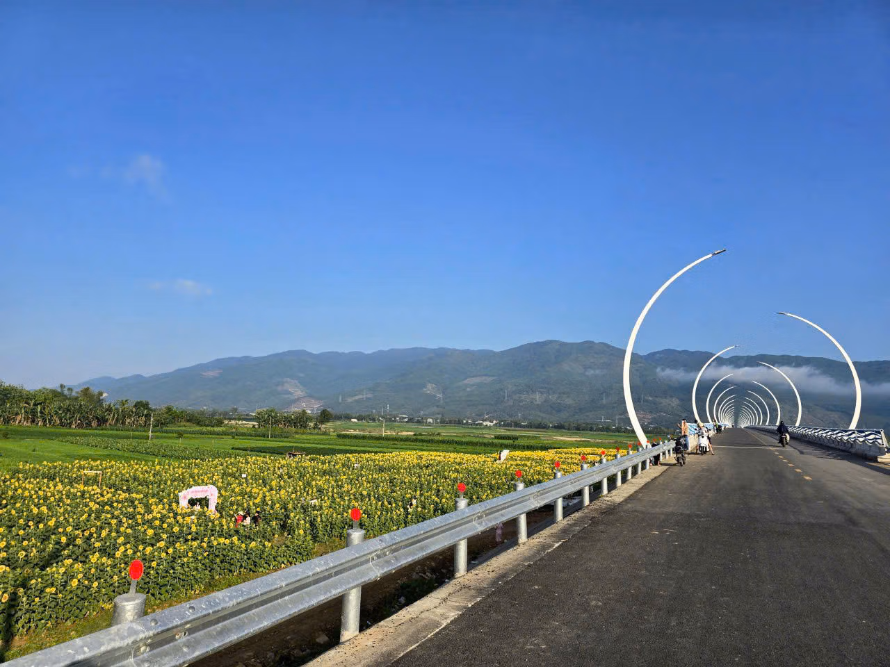 Những ngày qua, cánh đồng hoa hướng dương bên cầu An Bình, ở thôn Lâm Yên, xã Vu Gia, TP Đà Nẵng, rực rỡ sắc vàng khi hàng nghìn bông hoa đồng loạt nở rộ, tạo nên khung cảnh tươi sáng bên dòng sông và thu hút đông đảo người dân, du khách đến tham quan, chụp ảnh