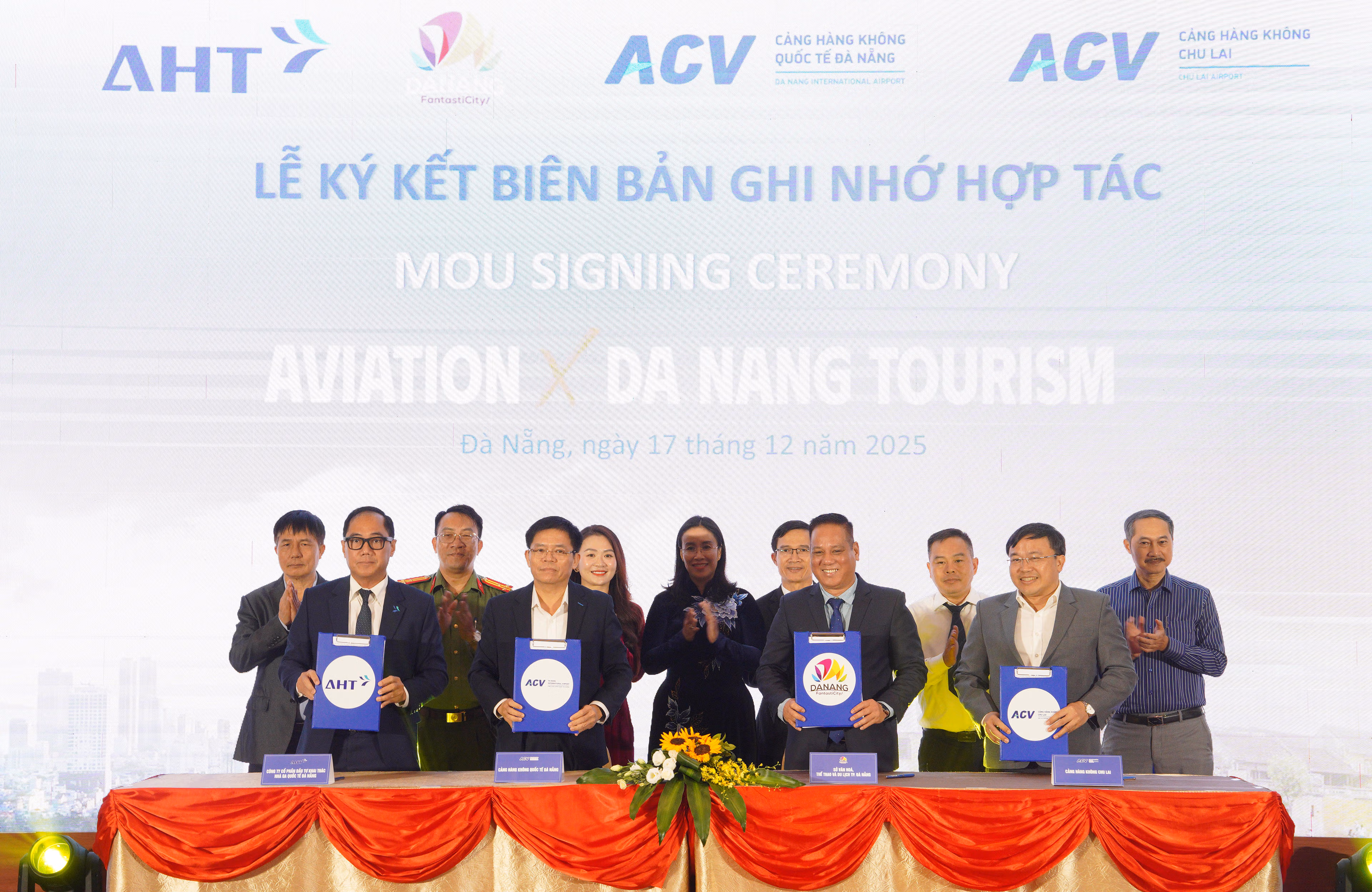 Dịp này, các đơn vị Sở Văn hóa, Thể thao và Du lịch, Cảng hàng không quốc tế Đà Nẵng, Cảng hàng không Chu Lai và Công ty CP Đầu tư khai thác nhà ga quốc tế Đà Nẵng (AHT) ký kết biên bản ghi nhớ hợp tác giai đoạn 2026–2030, nhằm tăng cường phối hợp xúc tiến mở mới và duy trì mạng lưới đường bay, quảng bá điểm đến, chia sẻ thông tin thị trường và nâng cao trải nghiệm du khách.