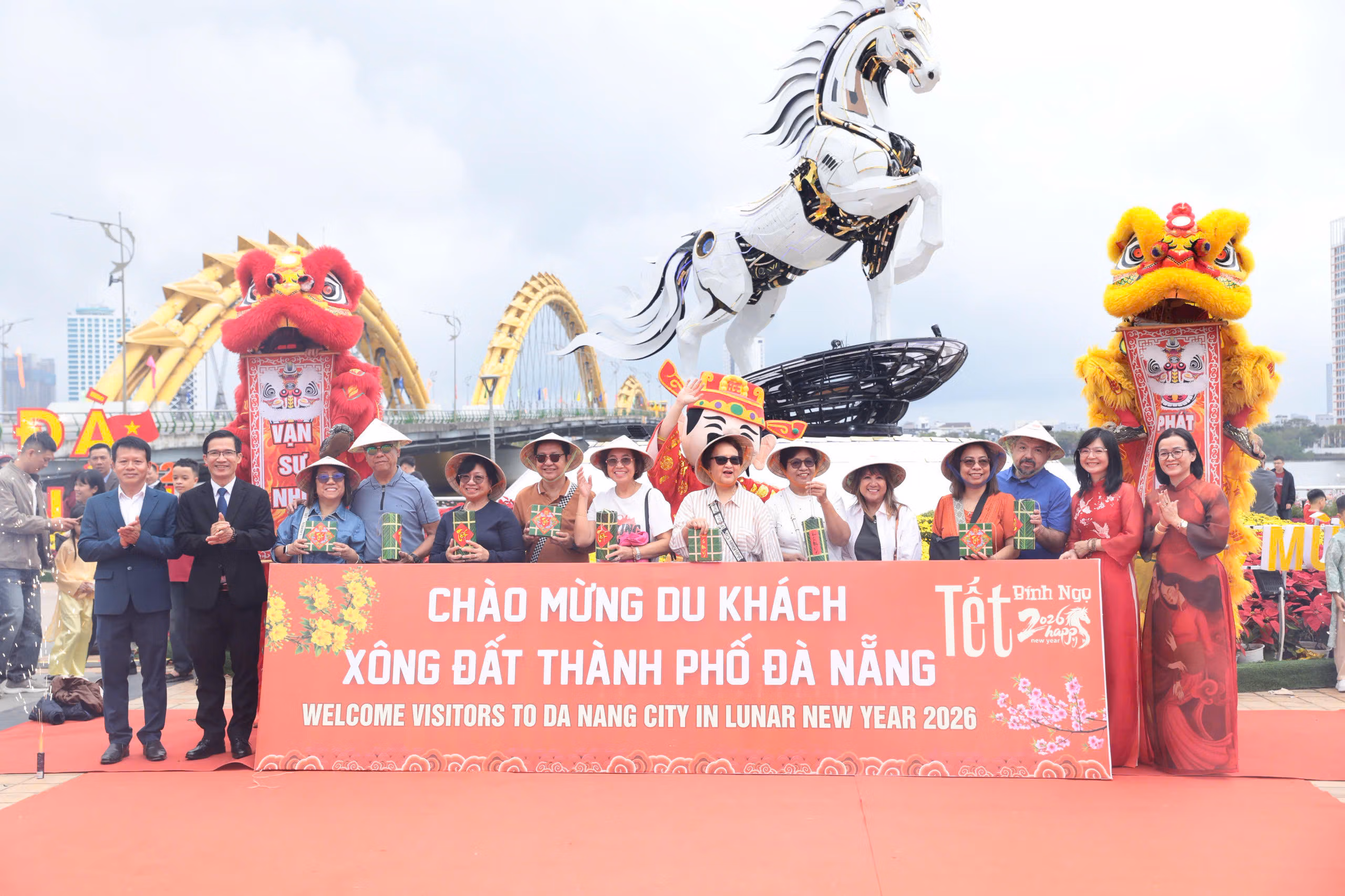 Sáng 17/2 (mùng 1 Tết Nguyên đán), Trung tâm Xúc tiến Du lịch TP Đà Nẵng, Sở Văn hóa, Thể thao và Du lịch TP Đà Nẵng tổ chức chương trình Khai xuân Bính Ngọ 2026, đón những du khách đầu tiên xông đất thành phố ngày đầu năm mới.
