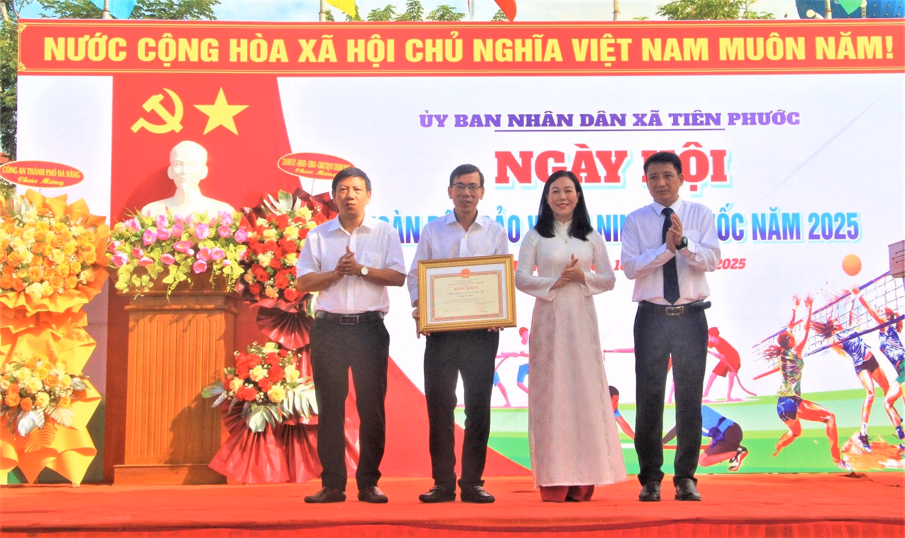 Phát biểu chỉ đạo Ngày hội, Đại tá Võ Thị Trinh, Phó Giám đốc Công an TP Đà Nẵng cho biết, những năm qua, cấp ủy, chính quyền, Mặt trận Tổ quốc, các ngành, đoàn thể và nhân dân xã Tiên Phước đã thực hiện hiệu quả phong trào toàn dân bảo vệ an ninh Tổ quốc. Đặc biệt trong giai đoạn hiện nay, thực hiện chủ trương tổ chức mô hình chính quyền địa phương 2 cấp, sắp xếp, sáp nhập đơn vị hành chính cấp tỉnh, cấp xã; Đảng ủy, UBND, Ủy ban Mặt trận Tổ quốc Việt Nam và các ban, ngành của xã Tiên Phước đã tập trung đẩy mạnh công tác bảo đảm an ninh, trật tự và xây dựng phong trào Toàn dân bảo vệ an ninh Tổ quốc trên địa bàn. Thông qua phong trào, nhân dân đã cung cấp nhiều thông tin giá trị giúp cấp ủy, chính quyền và lực lượng Công an giải quyết dứt điểm nhiều vụ việc xảy ra từ cơ sở.