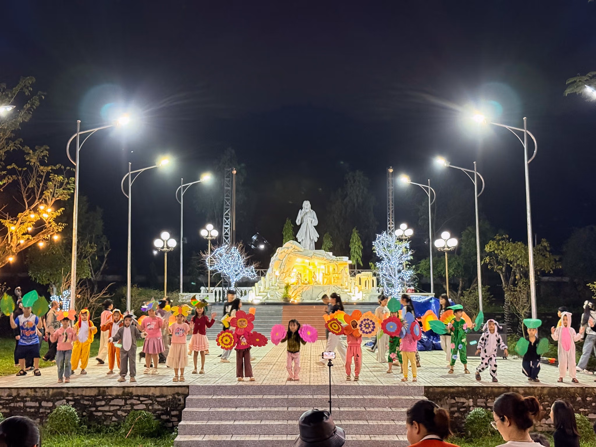 Đặc biệt vào ban đêm, hệ thống chiếu sáng và đèn trang trí rực rỡ để phục vụ người dân, giáo dân, du khách tham quan, check-in.