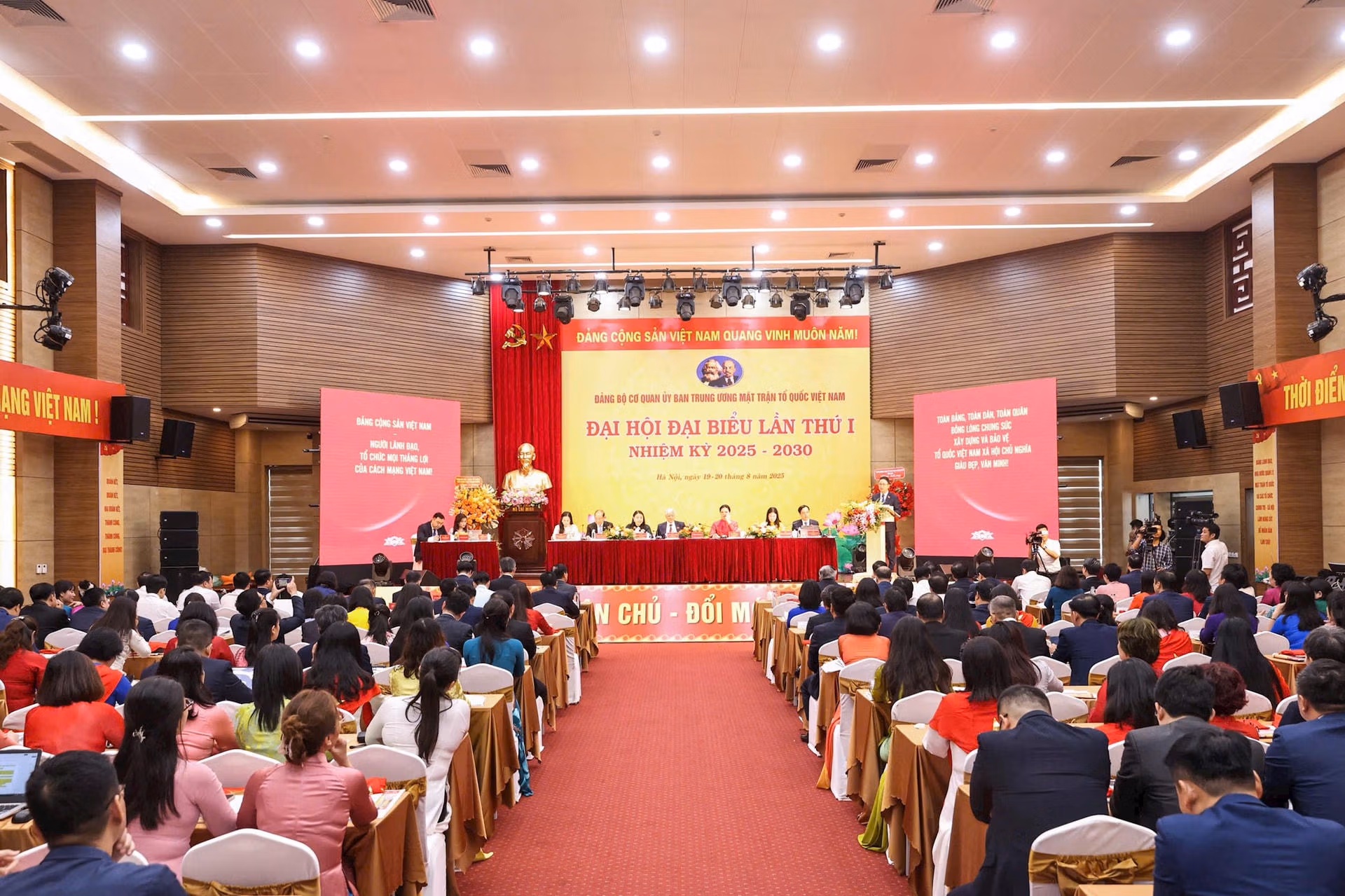 Sáng 20/8, tại Hà Nội, Đại hội đại biểu Đảng bộ Cơ quan UBTƯ MTTQ Việt Nam lần thứ I, nhiệm kỳ 2025-2030 đã chính thức khai mạc.