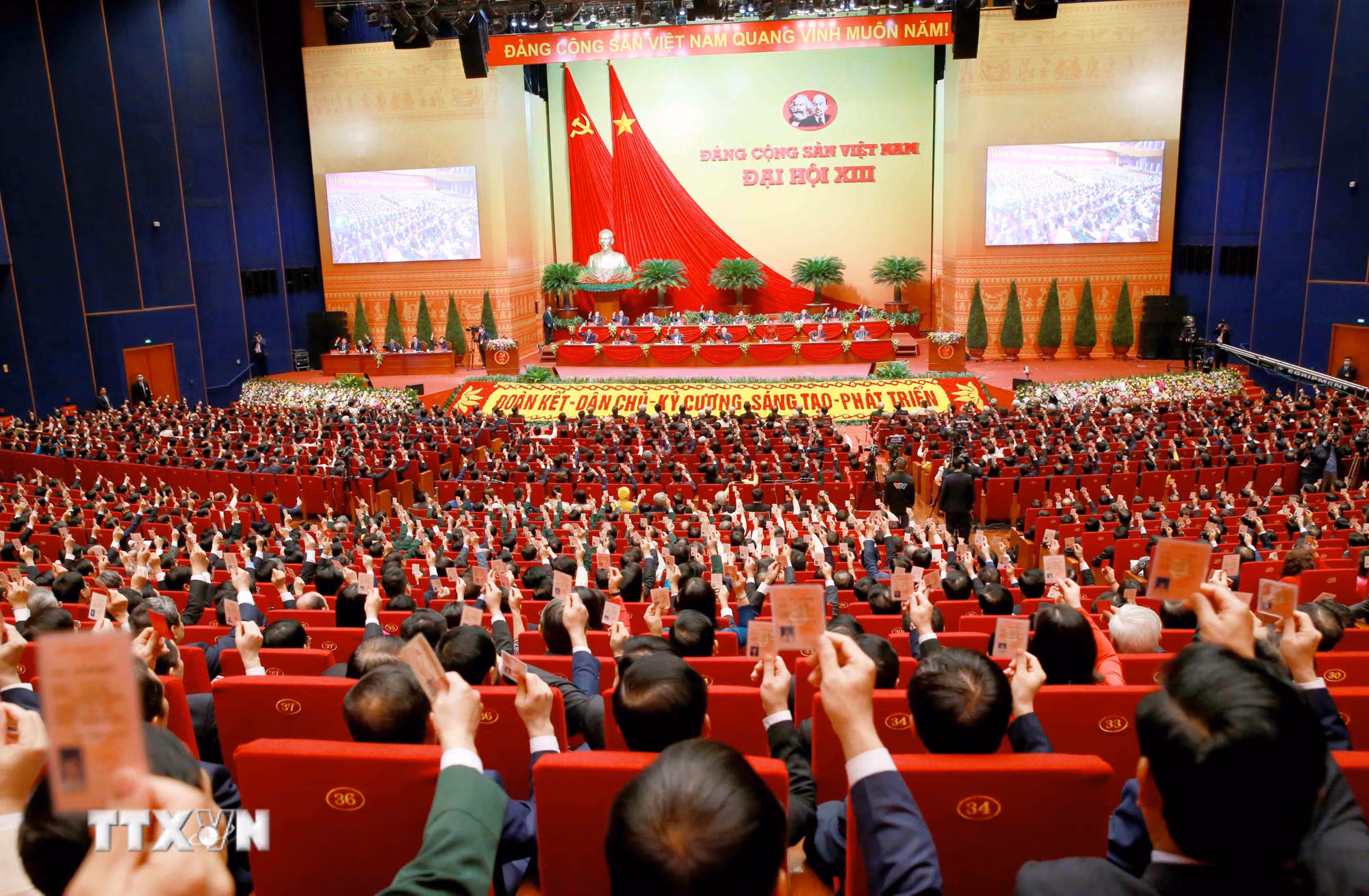 Đại hội kêu gọi toàn Đảng, toàn dân, toàn quân, đồng bào ta ở trong nước cũng như ở nước ngoài hãy phát huy cao độ tinh thần yêu nước, ý chí tự lực tự cường, sức mạnh đại đoàn kết toàn dân tộc, ra sức thi đua thực hiện thắng lợi Nghị quyết Đại hội với tinh thần năm sau phải tốt hơn năm trước; nhiệm kỳ khóa XIII phải tốt hơn nhiệm kỳ khóa XII"./.