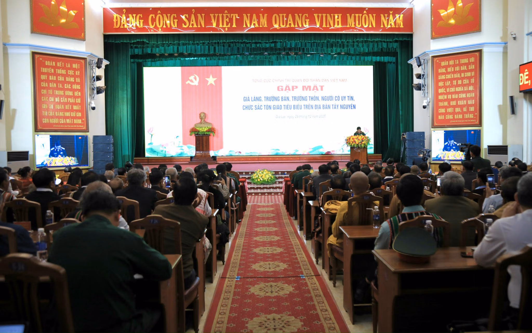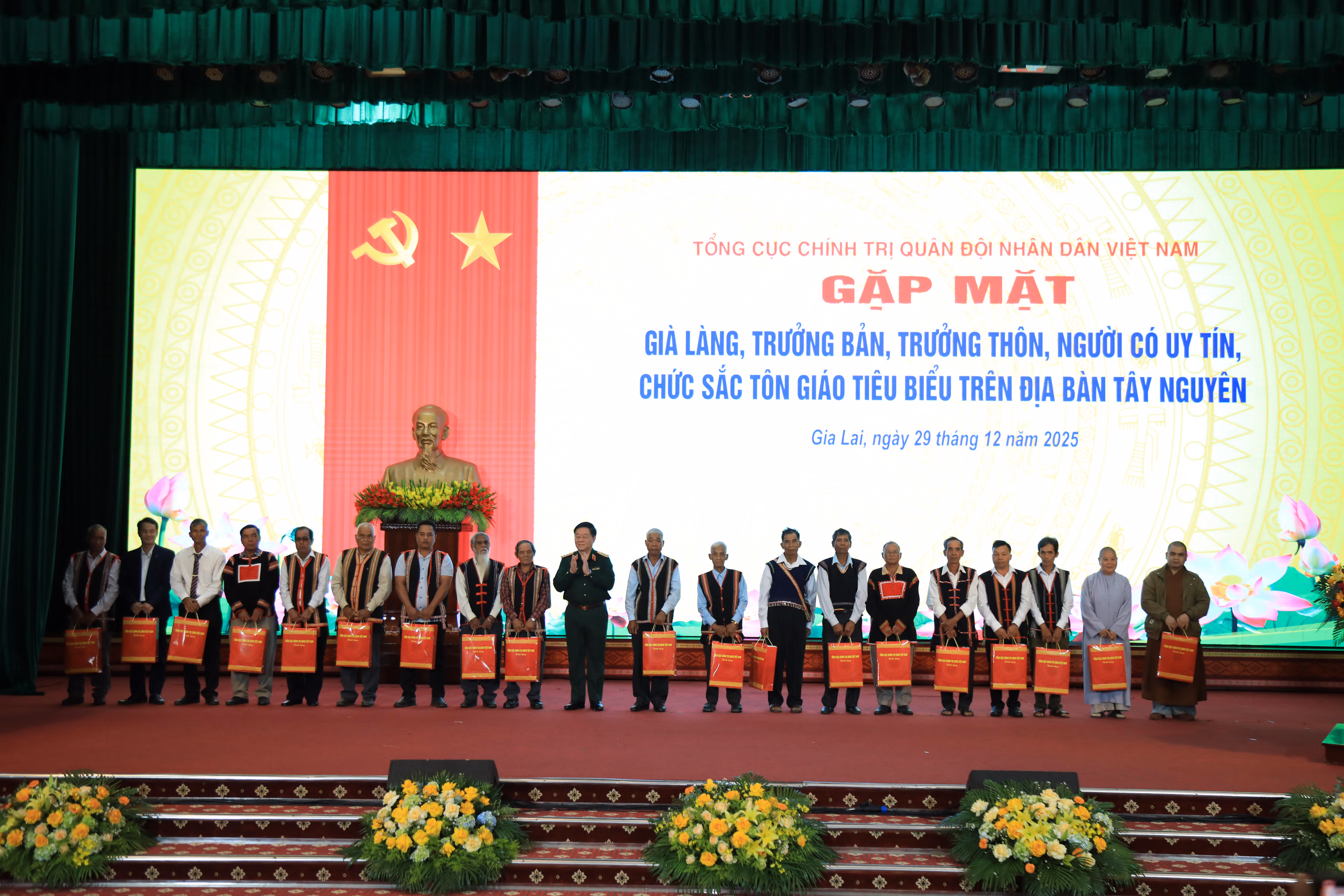 Ngày 29/12, tại phường Thống Nhất (tỉnh Gia Lai), Đại tướng Nguyễn Trọng Nghĩa, Ủy viên Bộ Chính trị, Bí thư Trung ương Đảng, Ủy viên Thường vụ Quân ủy Trung ương, Chủ nhiệm Tổng cục Chính trị Quân đội nhân dân (QĐND) Việt Nam đã chủ trì buổi gặp mặt già làng, trưởng thôn, trưởng bản, người có uy tín, chức sắc tôn giáo tiêu biểu trên địa bàn Tây Nguyên năm 2025.