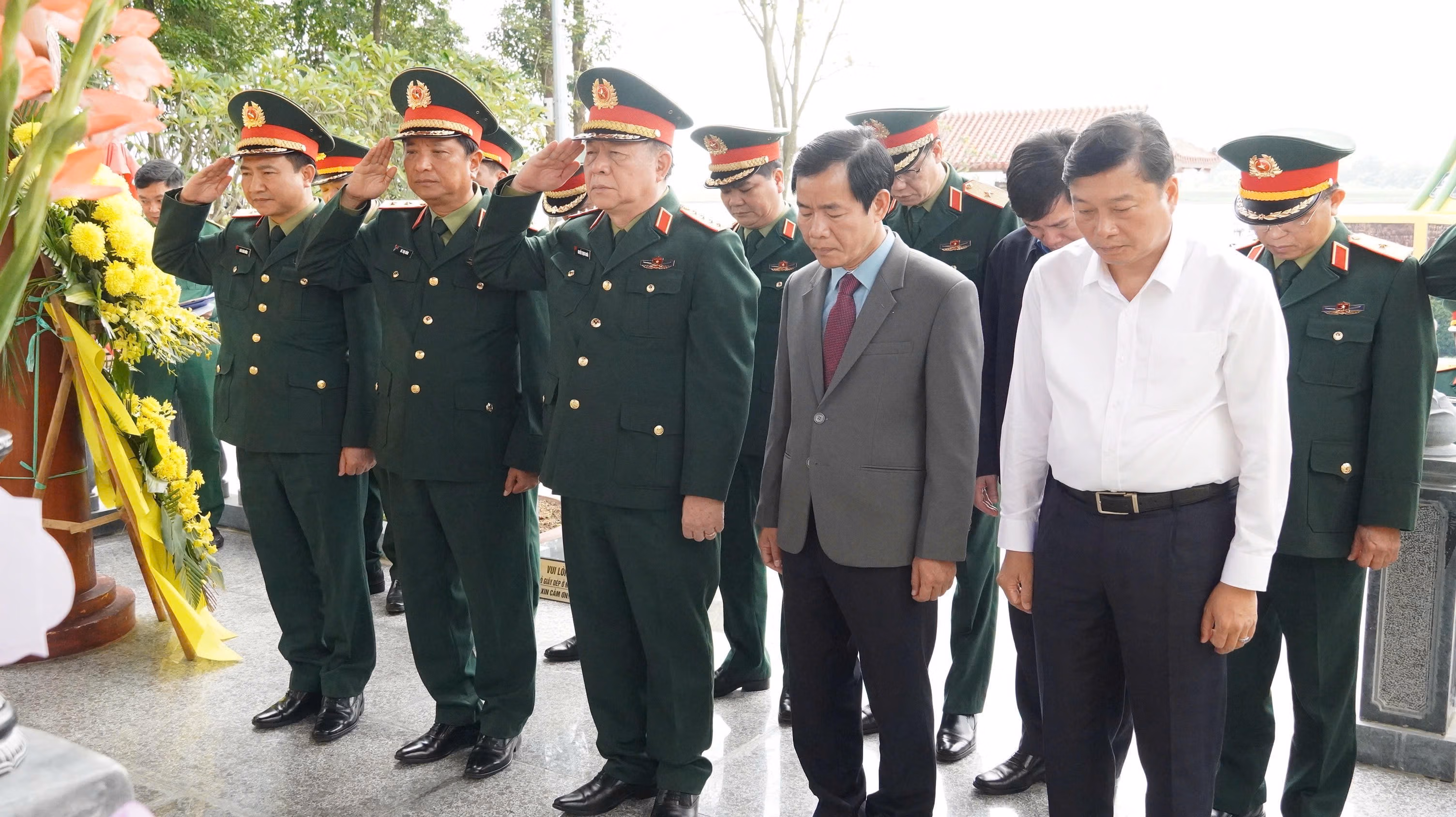 Trong khuôn khổ chuyến thăm, chúc Tết, Đại tướng Nguyễn Trọng Nghĩa cùng các đại biểu đã dâng hoa, dâng hương tri ân các Anh hùng liệt sĩ tại Khu tưởng niệm nơi hy sinh của 16 thanh niên xung phong (tháng 9/1972) tại Bến phà Long Đại.