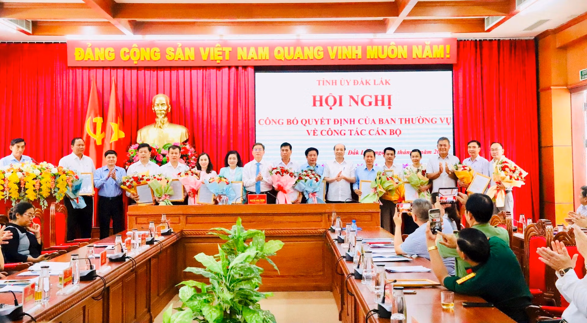 Hội nghị cũng công bố các Quyết định của Ban Thường vụ Tỉnh ủy Đắk Lắk về công tác cán bộ gồm: phân công, luân chuyển và chỉ định bà Lại Thị Loan, Tỉnh ủy viên, Chủ tịch Hội Nông dân tỉnh tham gia Ban Chấp hành Đảng bộ huyện, Ban Thường vụ Huyện ủy và giữ chức vụ Bí thư Huyện ủy Buôn Đôn, nhiệm kỳ 2020-2025, kể từ ngày 2/5/2024; phân công, điều động ông Ya Toan Ênuôl, Tỉnh ủy viên, Bí thư Huyện ủy, Chủ tịch Hội đồng nhân dân huyện Buôn Đôn đến nhận công tác tại Cơ quan Hội Nông dân tỉnh và chỉ định tham gia Đảng đoàn, giữ chức vụ Bí thư Đảng đoàn Hội Nông dân tỉnh, nhiệm kỳ 2023-2028, kể từ ngày 2/5/2024.