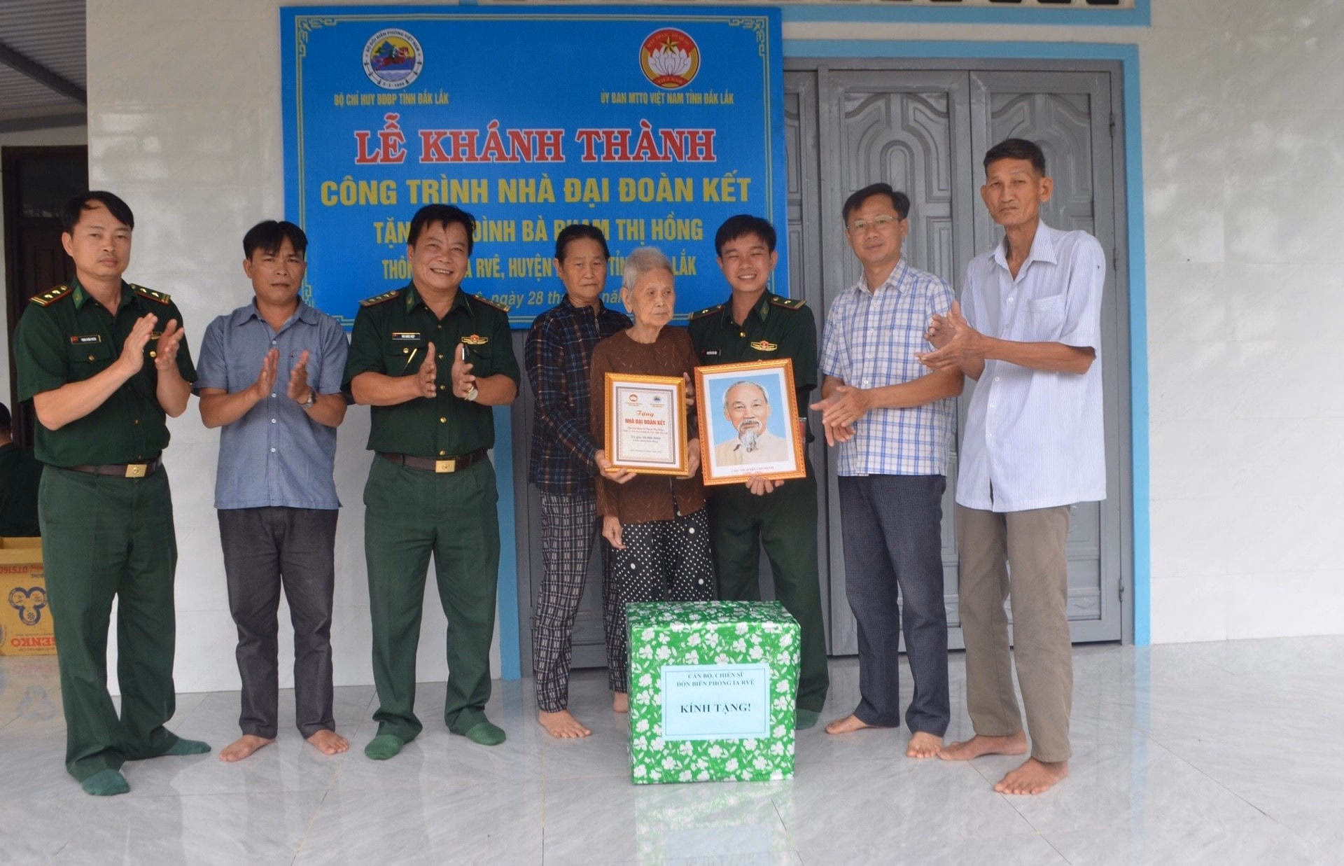 Phát biểu tại lễ khánh thành, Thượng tá Bùi Khắc Hiệp, Chủ nhiệm Chính trị BĐBP phòng tỉnh Đắk Lắk nhấn mạnh: Những năm qua, cùng với thực hiện tốt nhiệm vụ quản lý, bảo vệ biên giới quốc gia, BĐBP tỉnh Đắk Lắk đã tích cực tham mưu và tham gia cùng với cấp ủy, chính quyền địa phương trong xây dựng củng cố hệ thống chính trị cơ sở, giúp dân phát triển kinh tế, xã hội, đặc biệt vận động, kêu gọi các nguồn hỗ trợ xây dựng nhiều căn nhà tặng gia đình có hoàn cảnh khó khăn trên địa bàn biên giới.