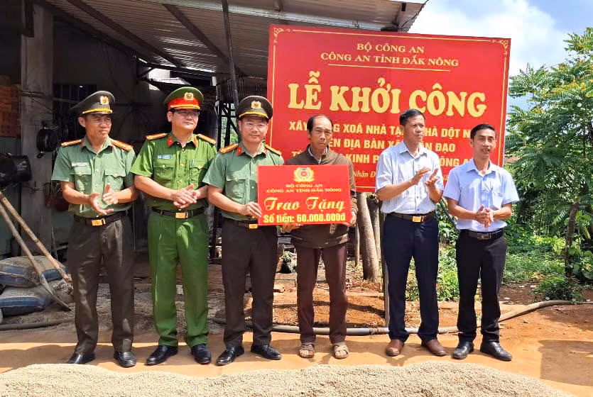 Phát biểu tại Lễ khởi công, đại diện các Tổ công tác và cấp ủy, chính quyền địa phương cho biết, vào ngày 12/5, tại Lễ phát động cao điểm ra quân xây dựng xoá nhà tạm, nhà dột nát trên địa bàn tỉnh Đắk Nông, lãnh đạo Bộ Công an đã trao tặng số tiền 30 tỷ đồng để tỉnh Đắk Nông hỗ trợ xây dựng 500 căn nhà cho các hộ dân thuộc diện hộ nghèo, hộ cận nghèo, gia đình chính sách, hộ không thuộc diện hỗ trợ của các chương trình mục tiêu quốc gia hoặc chưa được nhận hỗ trợ nhà ở trước đây... đang gặp khó khăn về nhà ở.