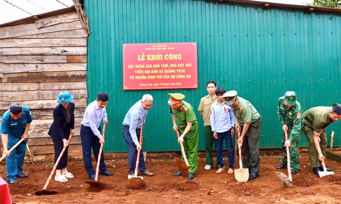 Từ nguồn kinh phí của Bộ Công an, từ ngày 12 đến 14/5, Công an các xã, phường, thị trấn trên địa bàn tỉnh Đắk Nông đã đồng loạt tổ chức lễ khởi công xây dựng xóa nhà tạm, nhà dột nát trên địa bàn.