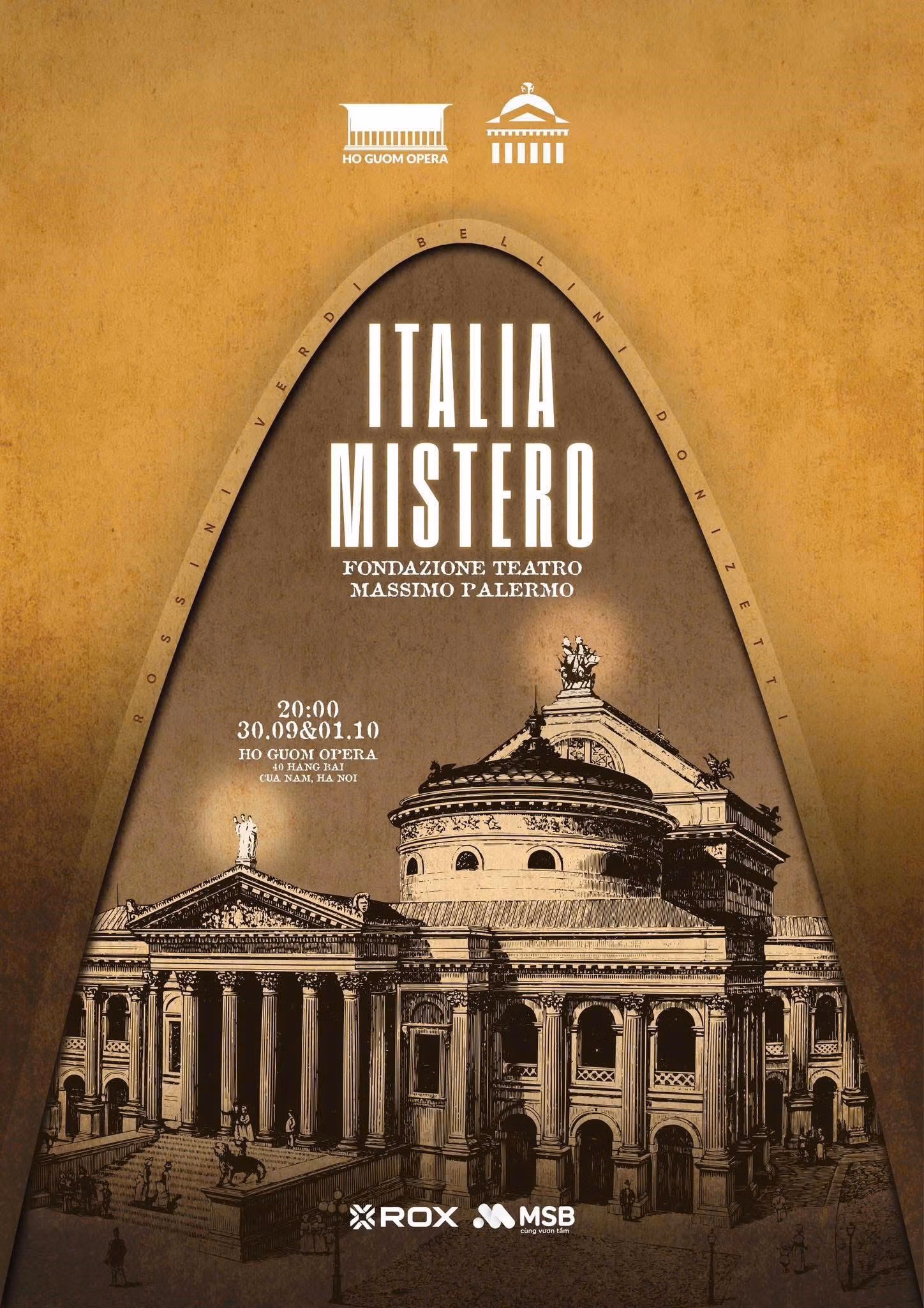 Lần đầu tiên tại Hà Nội, khán giả sẽ được trải nghiệm hai đêm hòa nhạc đặc biệt Italia Mistero, nơi Dàn nhạc Nhà hát Teatro Massimo - biểu tượng nghệ thuật của Palermo, một trong những dàn nhạc danh giá nhất nước Ý - tái hiện trọn vẹn vẻ đẹp lãng mạn và bi tráng của opera Ý thế kỷ XIX.