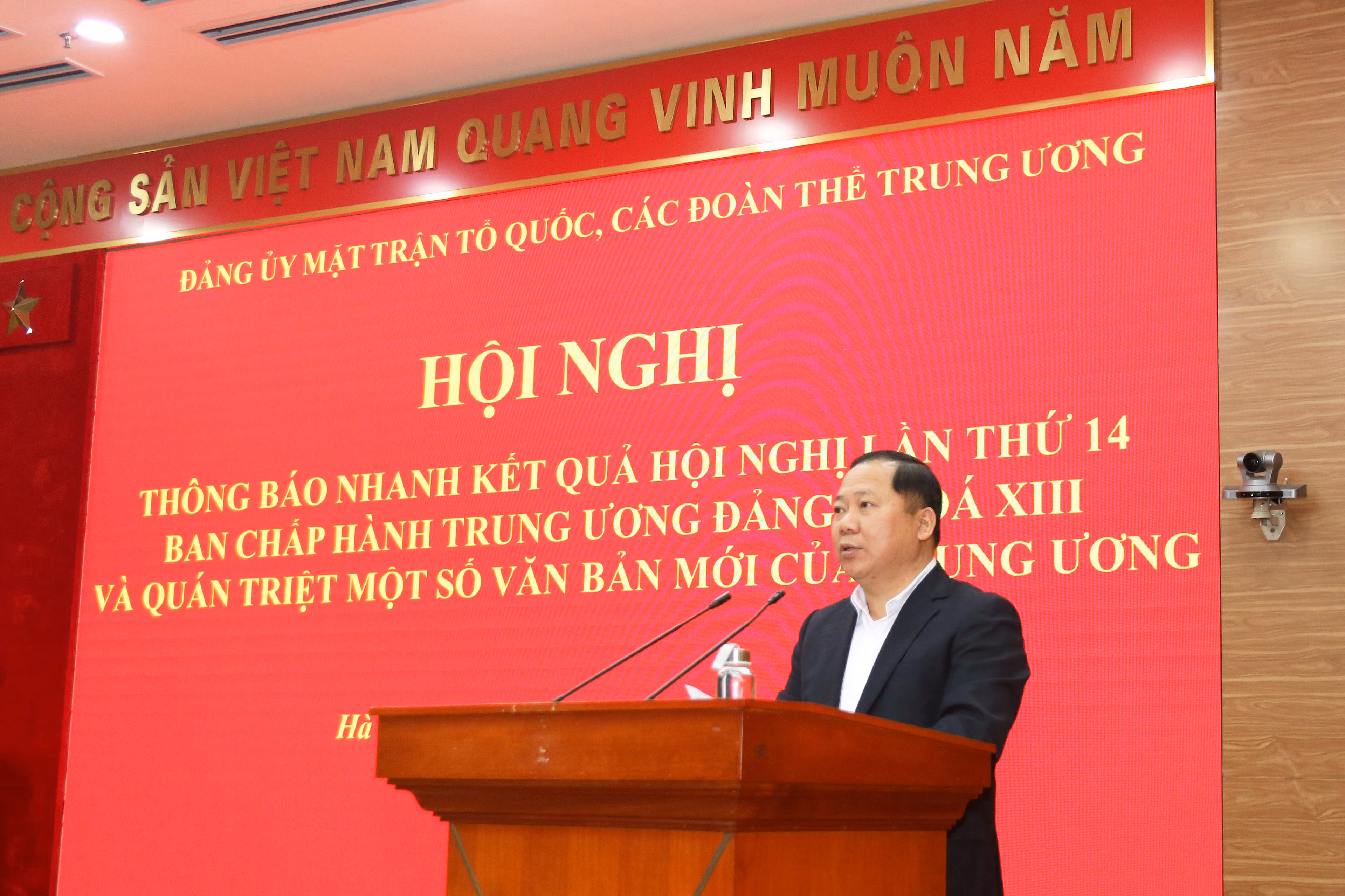 Đảng ủy MTTQ, các đoàn thể Trung ương thông báo kết quả Hội nghị Trung ương lần thứ 14