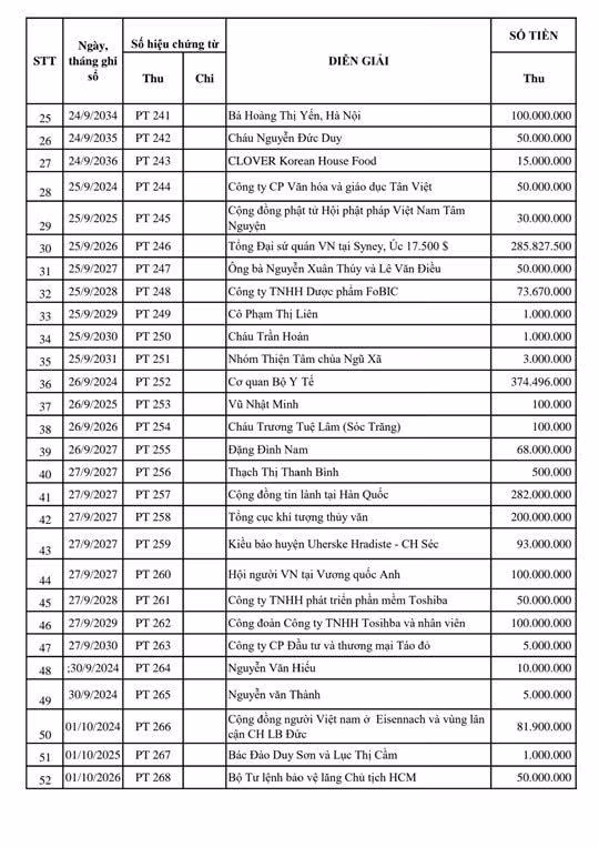 Danh sách các tập thể, cá nhân ủng hộ bằng tiền mặt tại Ủy ban Trung ương MTTQ Việt Nam từ ngày 20/9/2024 đến 12h ngày 8/10/2024