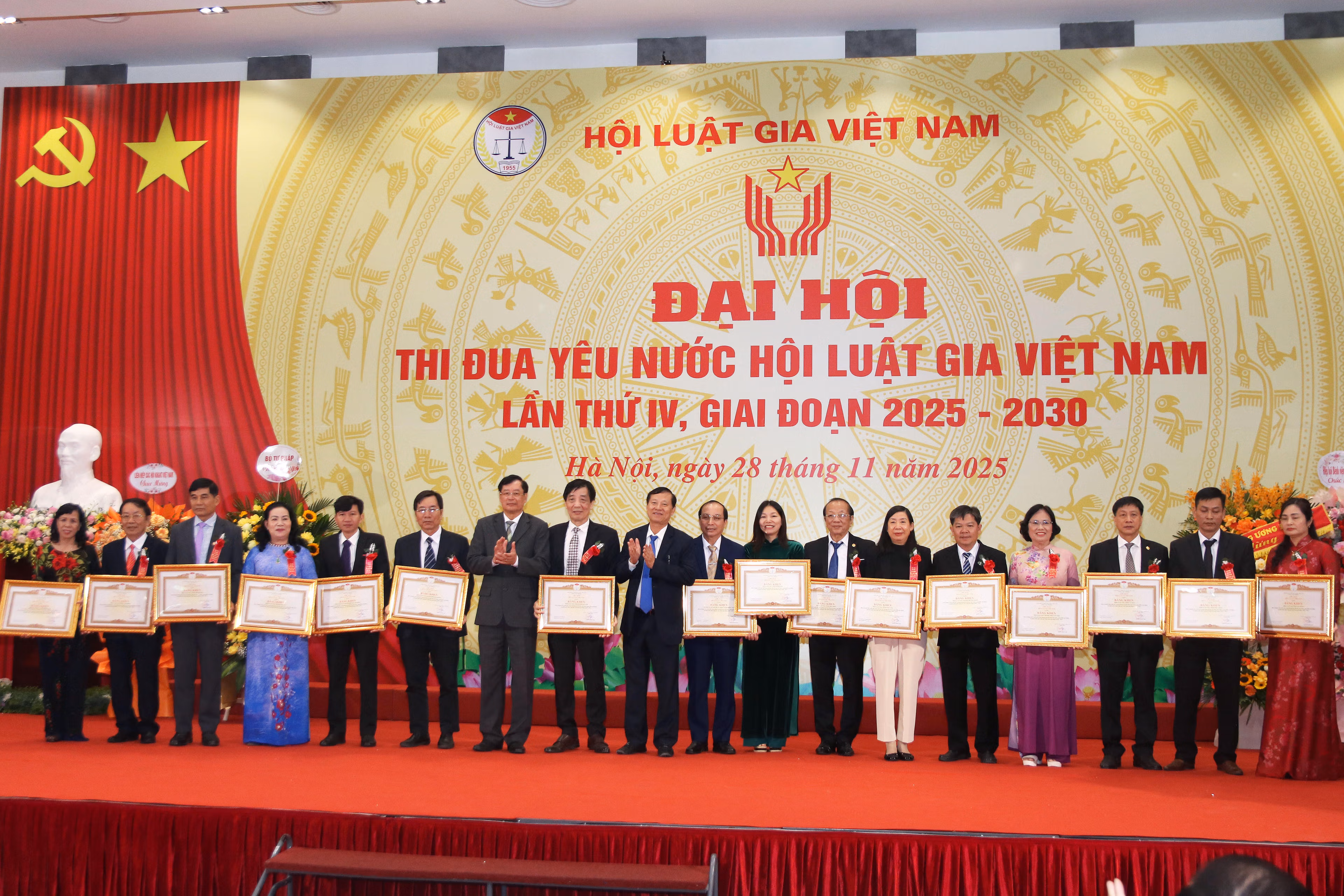Nhân dịp này, Hội Luật gia Việt Nam đã trao tặng Cờ thi đua cho các đơn vị dẫn đầu trong phong trào thi đua yêu nước giai đoạn 2020-2025; tặng Bằng khen cho các tập thể, cá nhân có thành tích xuất sắc trong triển khai các phong trào thi đua yêu nước giai đoạn 2020-2025.