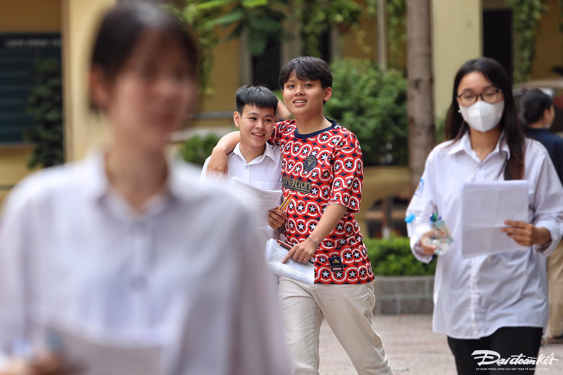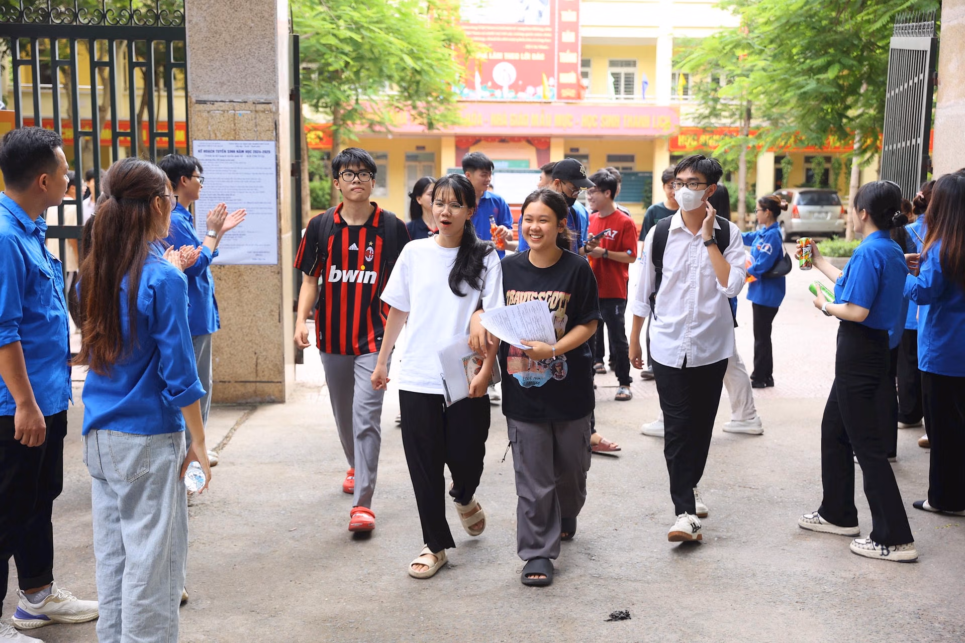 Đề Tiếng Anh không khó, thí sinh vui vẻ kết thúc kỳ thi tốt nghiệp Thứ Sáu 28/06/2024 16:15 (GMT+7) Sau khi hoàn tất môn Ngoại ngữ của Kỳ thi tốt nghiệp THPT, thí sinh nhận định đề thi Tiếng Anh năm nay dễ hơn so với đề minh họa. Bước ra từ điểm thi Trường THCS Văn Quán (Hà Nội), thí sinh Nguyễn Thị Thái Hà tự tin khẳng định đề dễ, em chỉ mất gần 20 phút là làm xong bài, còn lại ngồi chơi."Đề Tiếng Anh năm nay đều là những dạng cơ bản, quen thuộc đã được học trên lớp", Hà cho hay.Tương tự, Nguyễn Tuấn tại điểm thi THCS Văn Quán cho rằng: "Đề thi Tiếng Anh năm nay không quá khó, không đánh đố thí sinh. Đề thi nằm hoàn toàn trong chương trình học. Em làm được khoảng 90%. Nhiều bạn trong phòng thi vui vẻ khi hoàn thành bài thi”.Sau khi kết thúc môn thi cuối, các sĩ tử phấn khởi rời khỏi điểm thi.Người nhà của các thí sinh hồi hộp, rồi vỡ oà niềm vui khi con mình làm được bài.Sinh viên tình nguyện chúc mừng các thi sinh hoàn thành kỳ thi.Thí sinh khá hài lòng với đề thi Tiếng Anh năm nay.Sĩ tử gửi lời cảm ơn thầy cô, bố mẹ sau khi hoàn thành kỳ thi vượt vũ môn.Nhiều sĩ tử kiểm tra lại sau khi kết thúc môn thi.Thí sinh vui vẻ vì làm được bài.Kết quả của kỳ thi sẽ được công bố dự kiến vào 8h ngày 17/7/2024. Lê Khánh