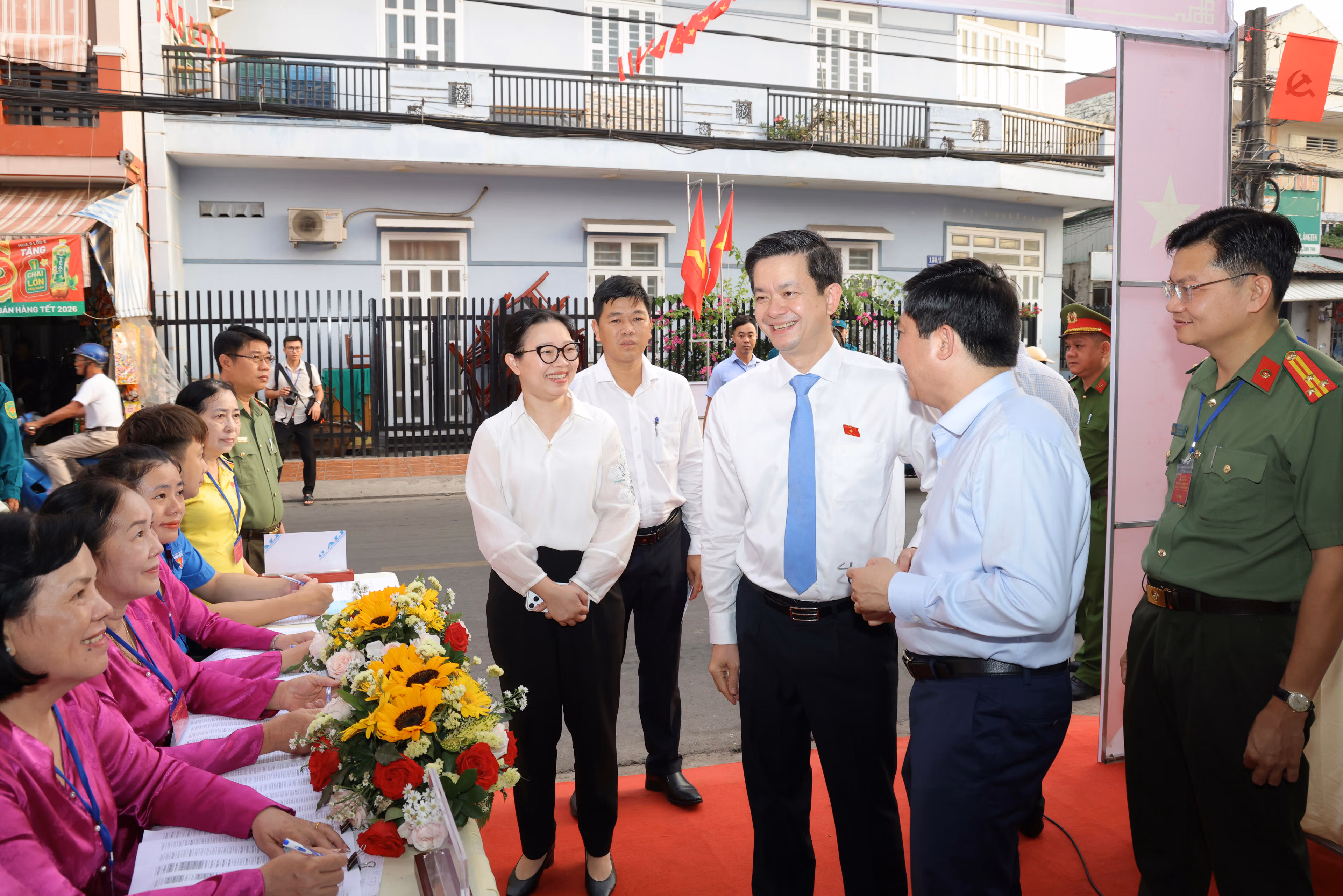 Từ sáng sớm, Đoàn lãnh đạo Thành ủy Cần Thơ có mặt tại các khu vực bỏ phiếu được phân công vừa kiểm tra công tác bỏ phiếu, vừa thực hiện quyền công dân.