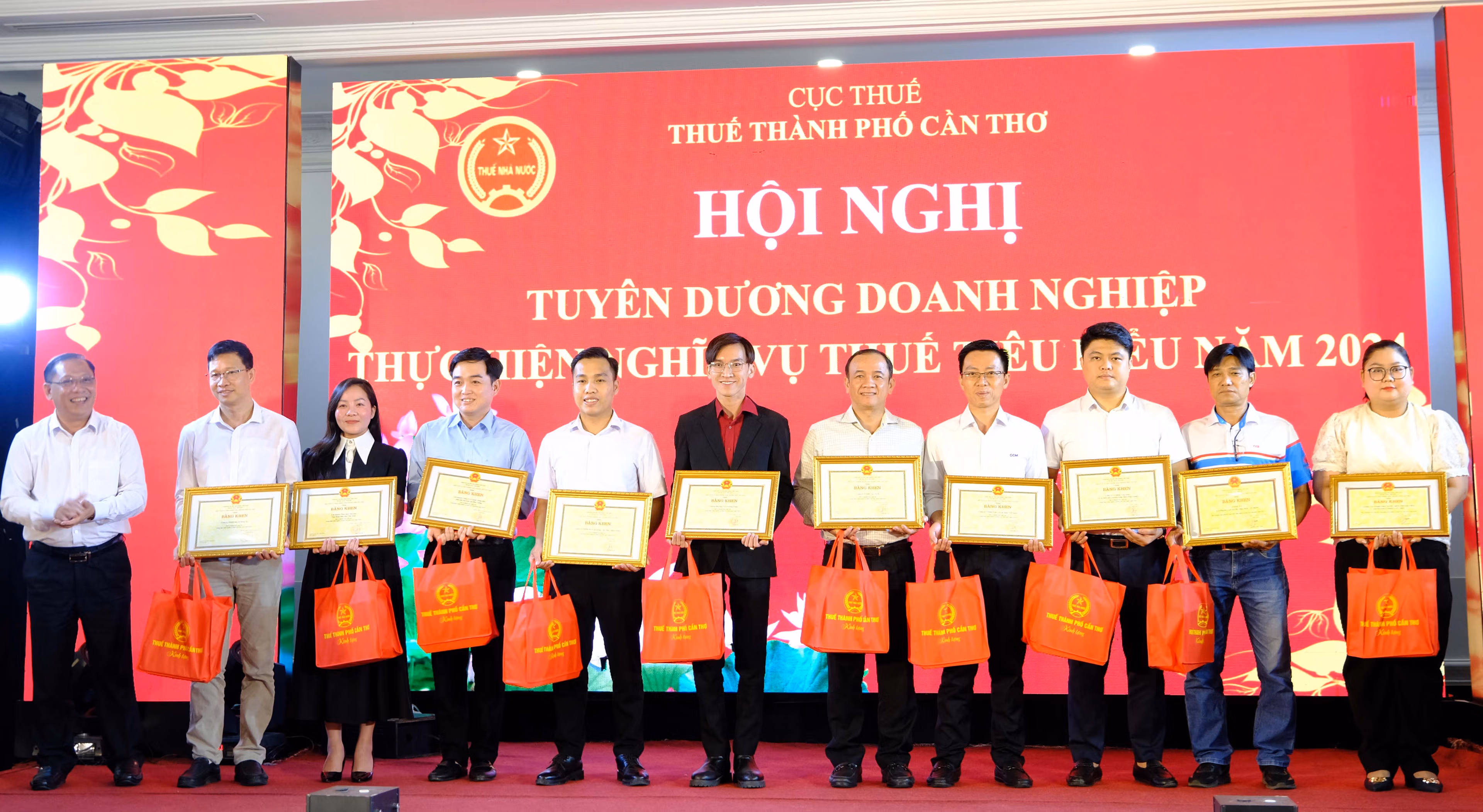 Ghi nhận và tôn vinh thành tích hoàn thành xuất sắc nghĩa vụ nộp thuế của cộng đồng doanh nghiệp năm 2024, Chủ tịch UBND TP Cần Thơ Trương Cảnh Tuyên đã ký tặng Bằng khen 21 doanh nghiệp; Cục trưởng Cục Thuế tặng Giấy khen 33 doanh nghiệp; Trưởng Thuế thành phố tặng Giấy khen 166 doanh nghiệp.