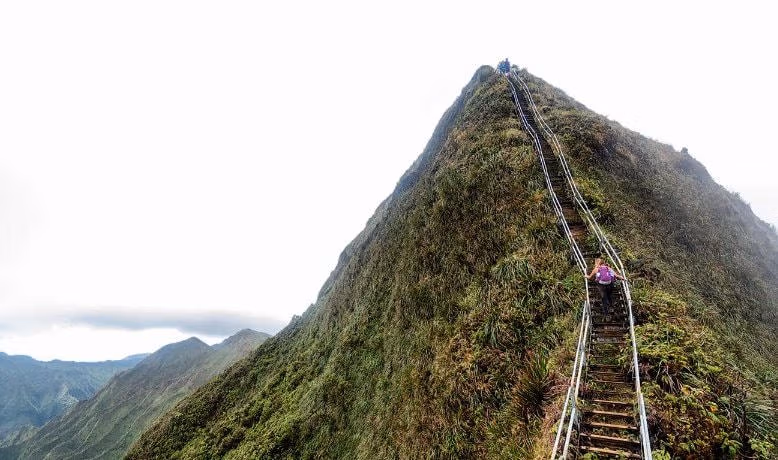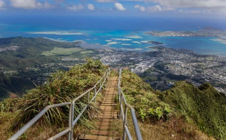 Cầu thang Haiku, hay còn được biết đến như “nấc thang lên thiên đường”, trải dài theo sườn núi Ko’olau tại đảo Oahu đã bị đi qua gần 4.000 lần. Công trình này được xây dựng vào Thế chiến thứ 2 bởi Hải quân Mỹ để dẫn đường lên đài phát thanh Hải quân.