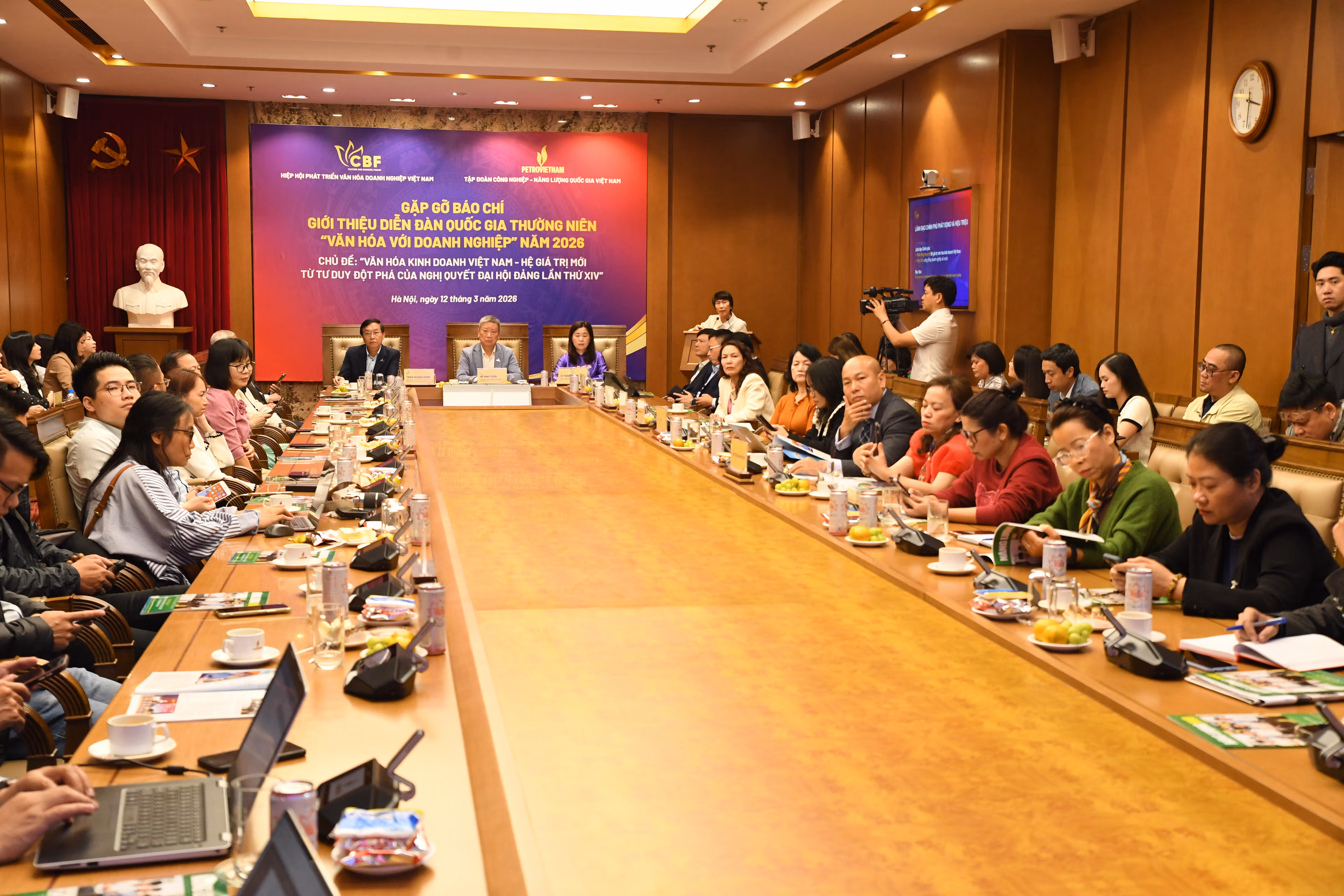 Ngày 12/3, tại Hà Nội, Hiệp hội phát triển Văn hóa doanh nghiệp Việt Nam phối hợp với Tập đoàn công nghiệp năng lượng quốc gia Việt Nam thông tin về Diễn đàn Quốc gia thường niên “Văn hóa với Doanh nghiệp” năm 2026, với chủ đề “Văn hoá kinh doanh Việt Nam – Hệ giá trị mới từ tư duy đột phá của Nghị quyết Đại hội Đảng XIV”.