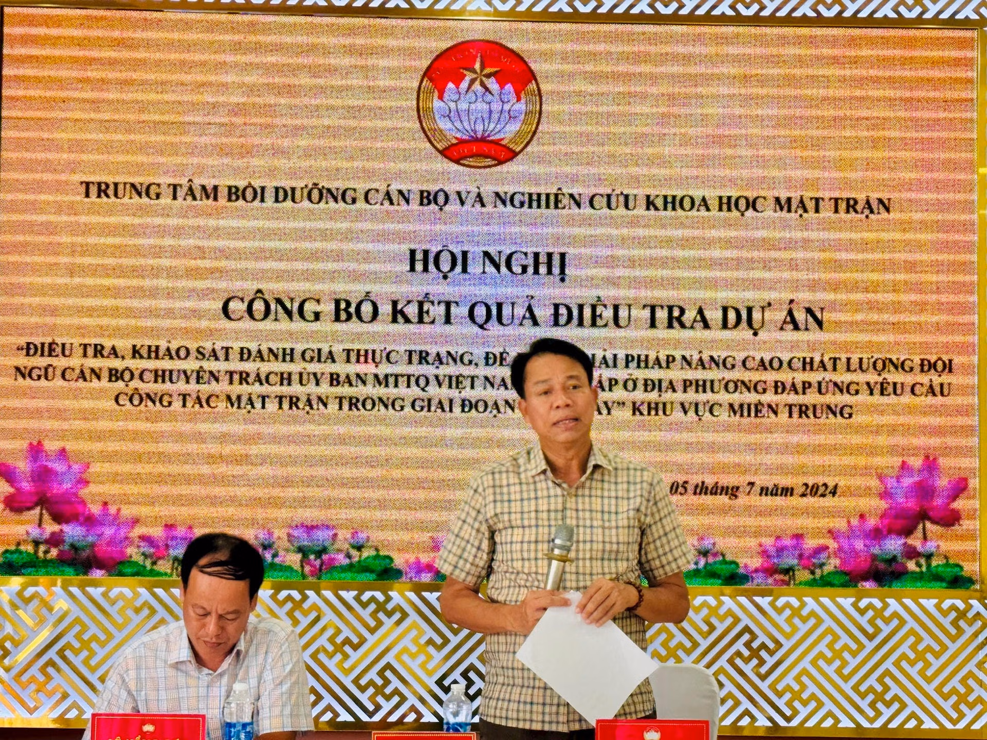 TS. Lê Mậu Nhiệm, Giám đốc Trung tâm Bồi dưỡng cán bộ và Nghiên cứu khoa học MTTQ Việt Nam và Th.S. Lê Hồng Sơn, Phó Chủ tịch Ủy ban MTTQ Việt Nam tỉnh Quảng Trị chủ trì Hội nghị.