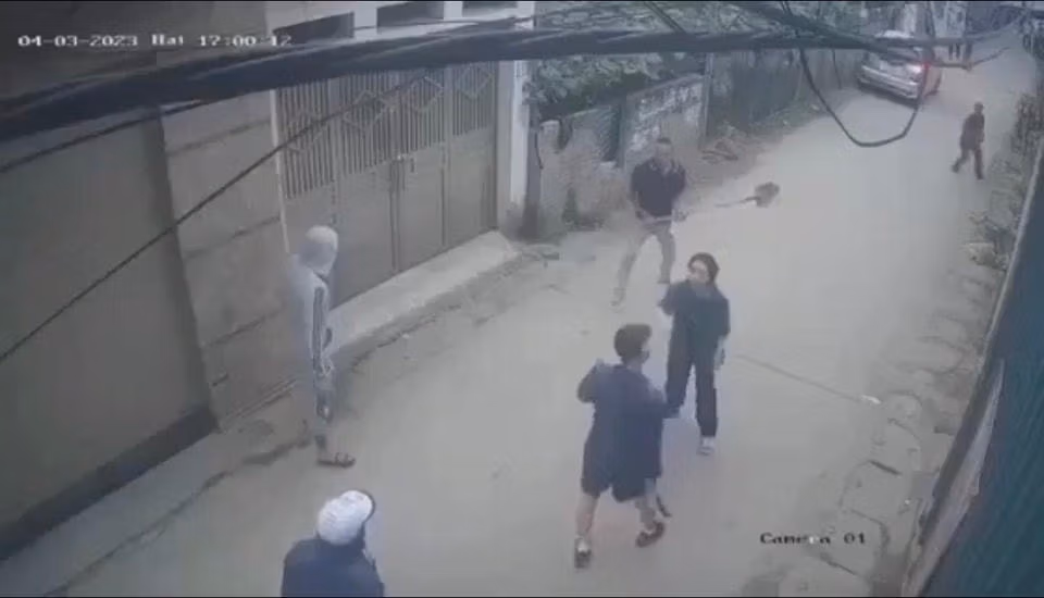 Theo nội dung đoạn clip, nhóm khoảng 4 người mặc kín, cầm theo dao xô xát với một người đàn ông cầm xẻng. Khi người đàn ông cầm xẻng bị ngã, 4 người này xông vào chém nạn nhân đứt lìa cánh tay. Sau khi gây án, 4 người rời khỏi hiện trường.