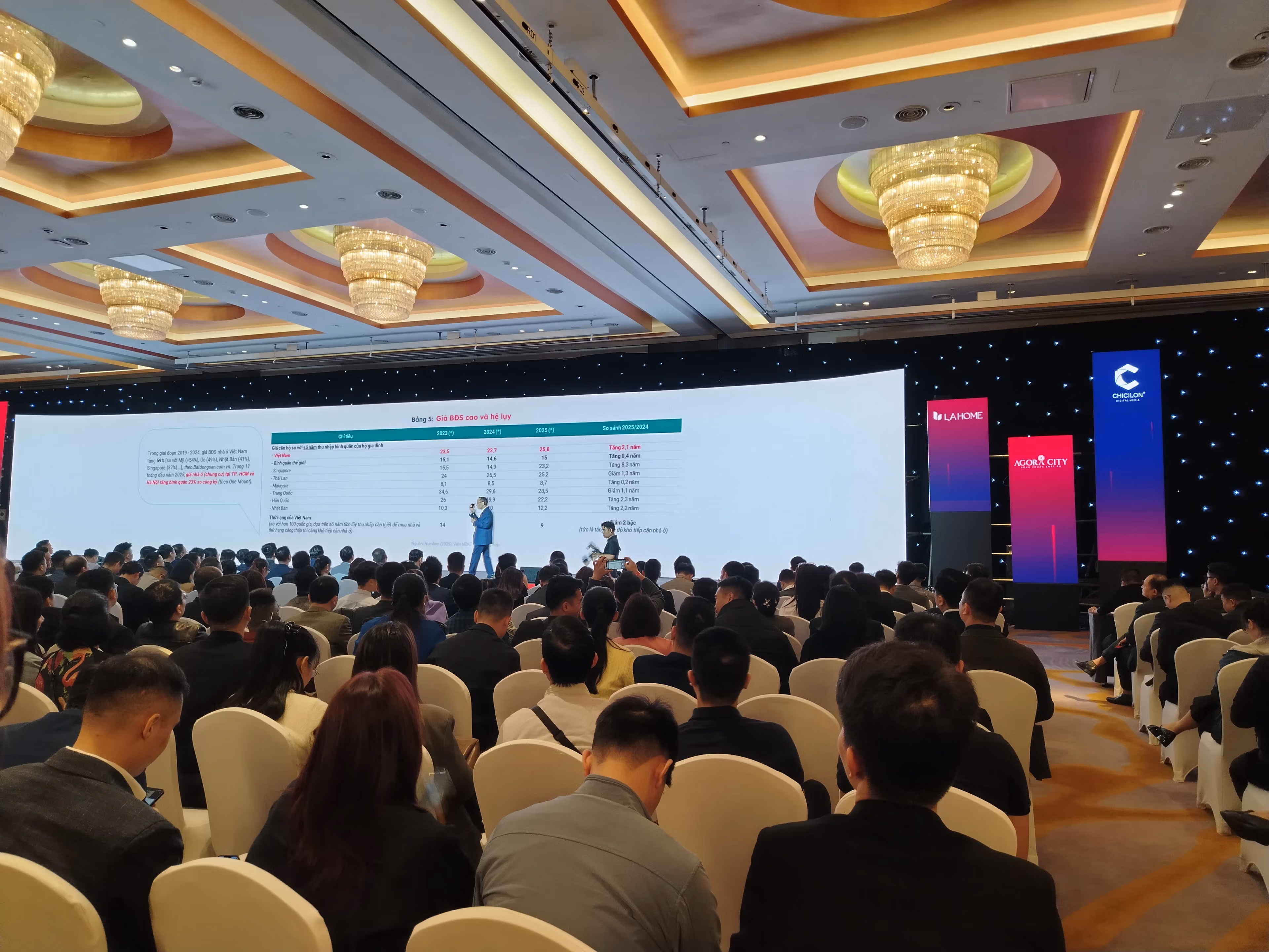 Ông Lê Bảo Long đưa ra một dữ liệu của Batdongsan.com.vn, nhu cầu sở hữu nhà trong vòng 5 năm tới tại TP. HCM đạt tới 81%, cao hơn đáng kể so với Hà Nội (69%). Sự chênh lệch này xuất phát chủ yếu từ nguồn cung căn hộ giá thấp. Tại TP. HCM, phân khúc chung cư dưới 3 tỷ đồng chiếm 21-31% tổng nguồn cung, trong khi Hà Nội chỉ đạt khoảng 10%.