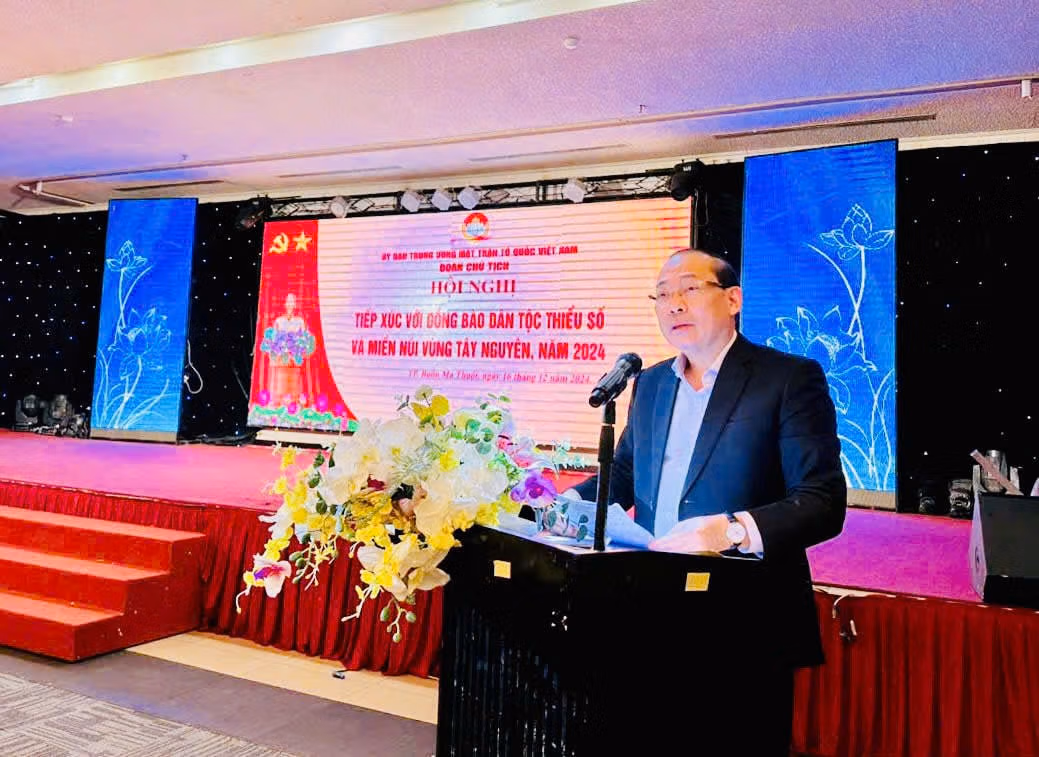 Ngày 16/12, tại TP Buôn Ma Thuột, tỉnh Đắk Lắk, Đoàn Chủ tịch Ủy ban Trung ương MTTQ Việt Nam đã tổ chức Hội nghị tiếp xúc với đồng bào dân tộc thiểu số (DTTS) và miền núi vùng Tây nguyên năm 2024.