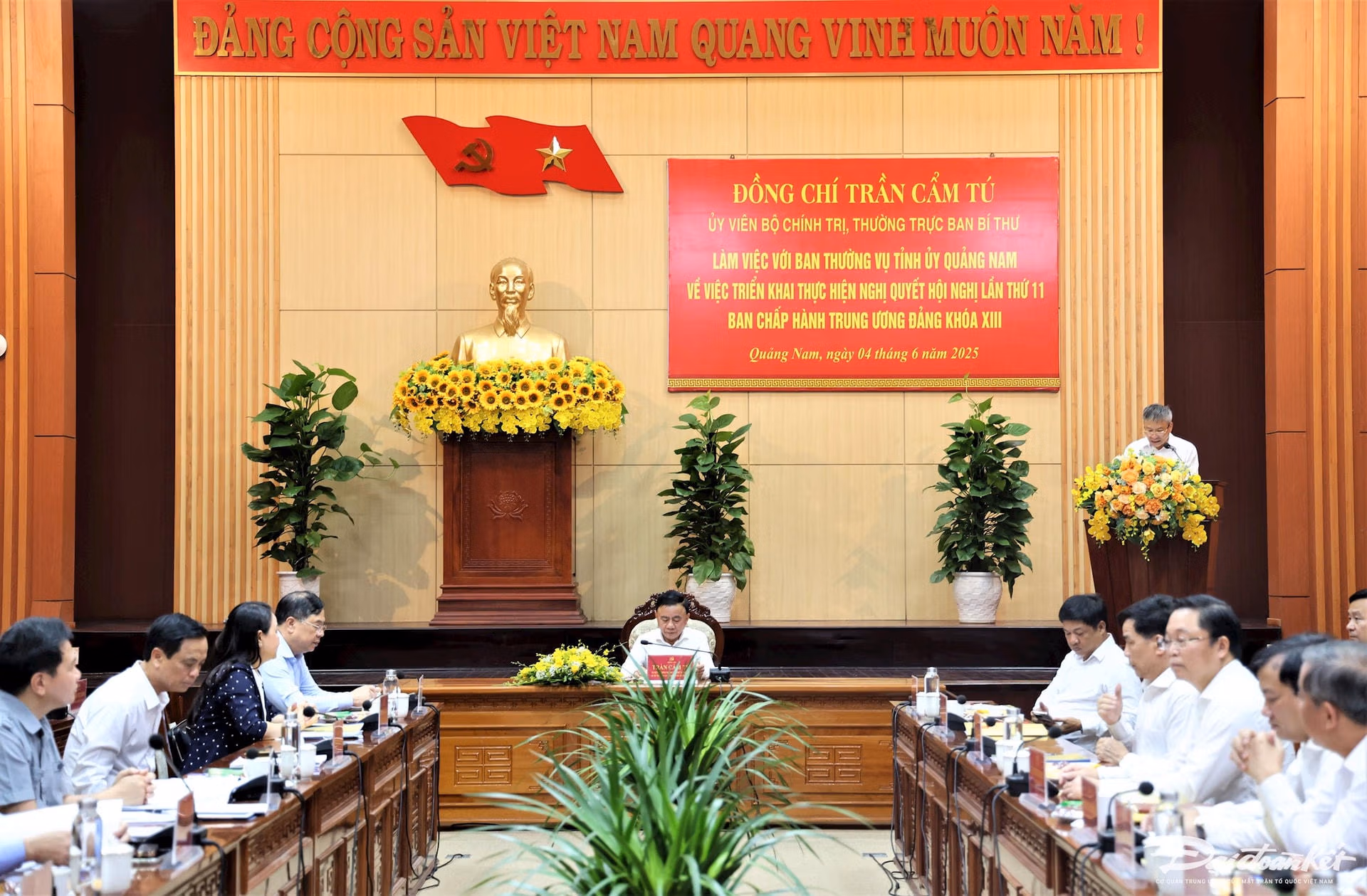 Chiều 4/6, tại TP Tam Kỳ, tỉnh Quảng Nam, Ủy viên Bộ Chính trị, Thường trực Ban Bí thư Trần Cẩm Tú và đoàn công tác làm việc với Ban Thường vụ Tỉnh ủy Quảng Nam về việc triển khai thực hiện Nghị quyết Hội nghị lần thứ 11 Ban Chấp hành Trung ương Đảng khoá XIII.